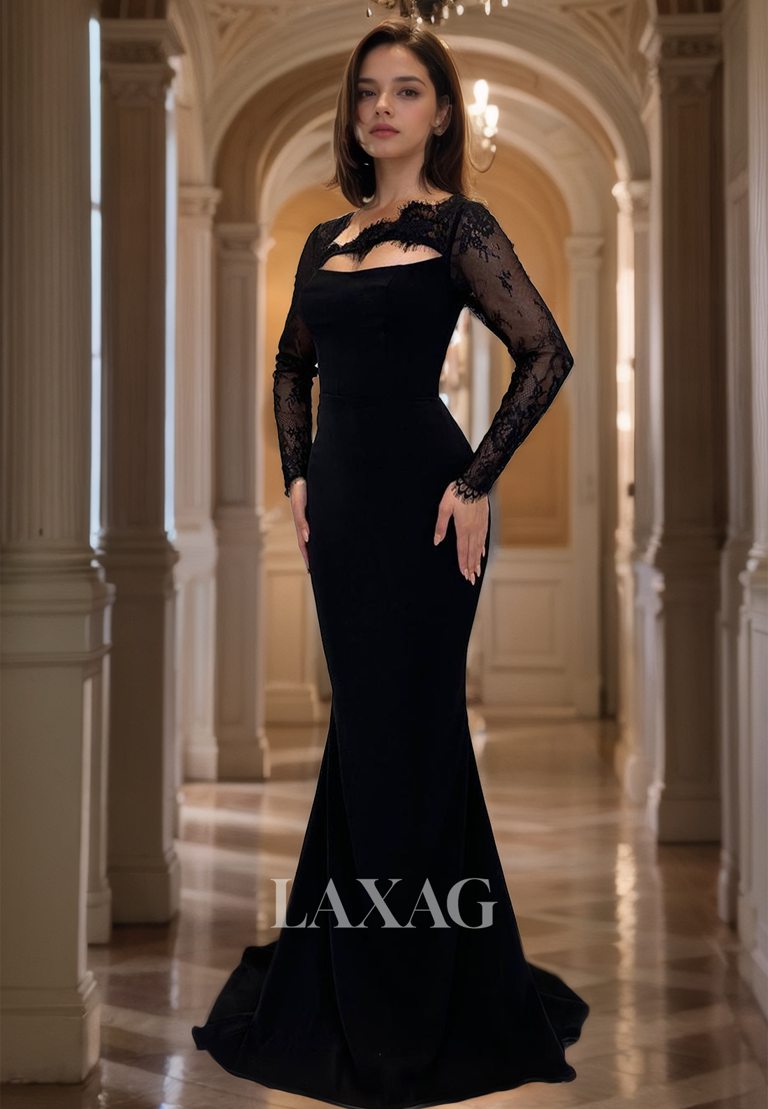 This Tube Top Lace Long-Sleeves Satin Mermaid Formal Prom Dress is perfect for any formal occasion. The elegant lace detailing adds a touch of femininity, while the satin fabric offers a luxurious feel. The sweeping train adds a dramatic flair to this mermaid-style dress, making it a standout choice for prom or other special events.