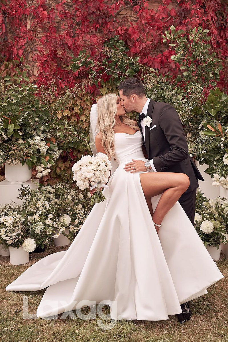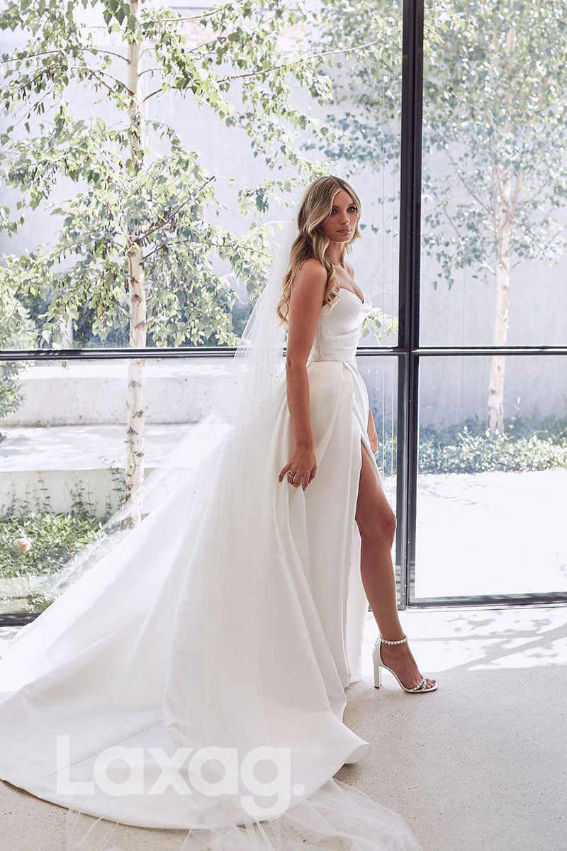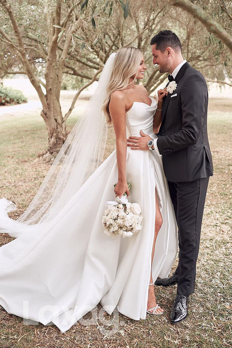 Strapless Ivory Satin High Split Rustic Wedding Dress