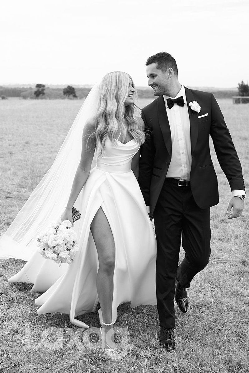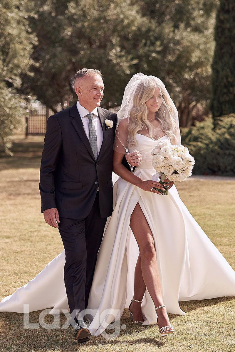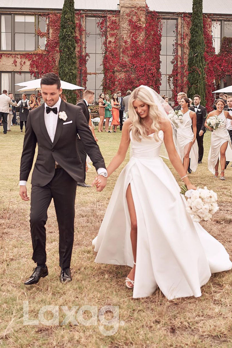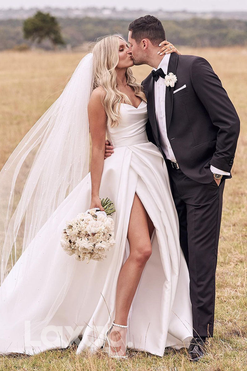 Strapless Ivory Satin High Split Rustic Wedding Dress
