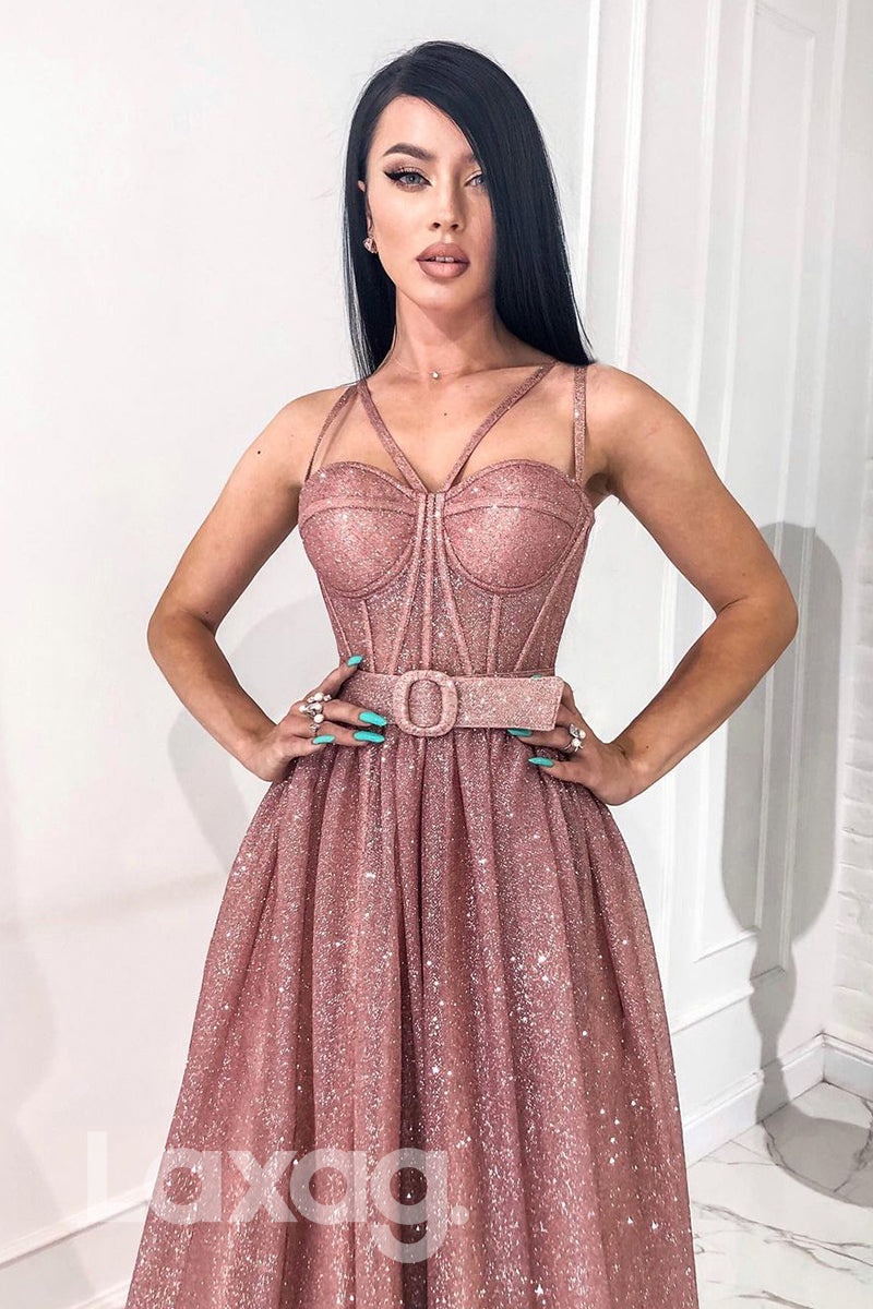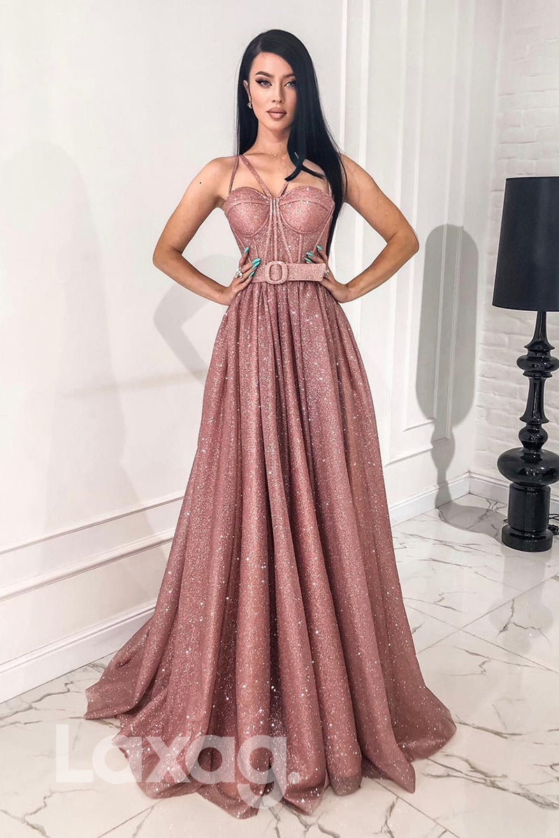 Spaghetti Straps A-line Sparkly Prom Dress with Pockets