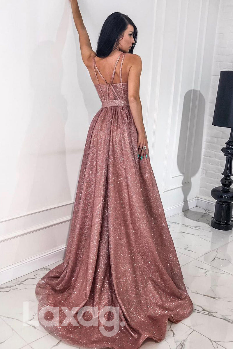 19714 - Spaghetti Straps A-line Sparkly Prom Dress with Pockets