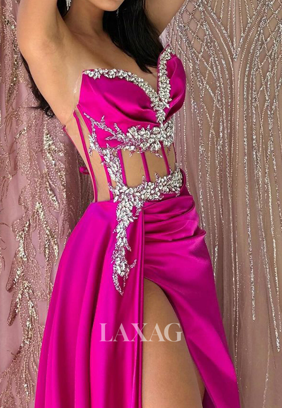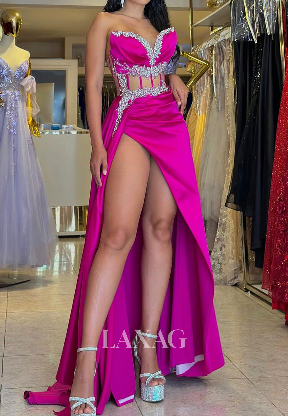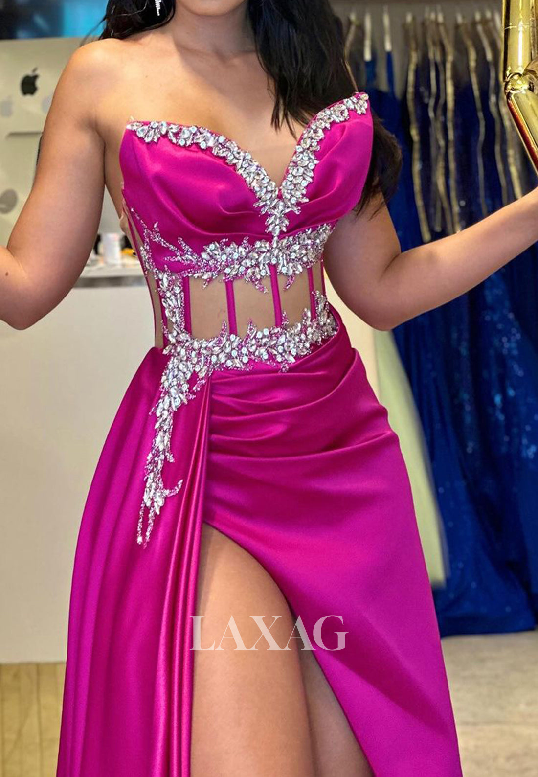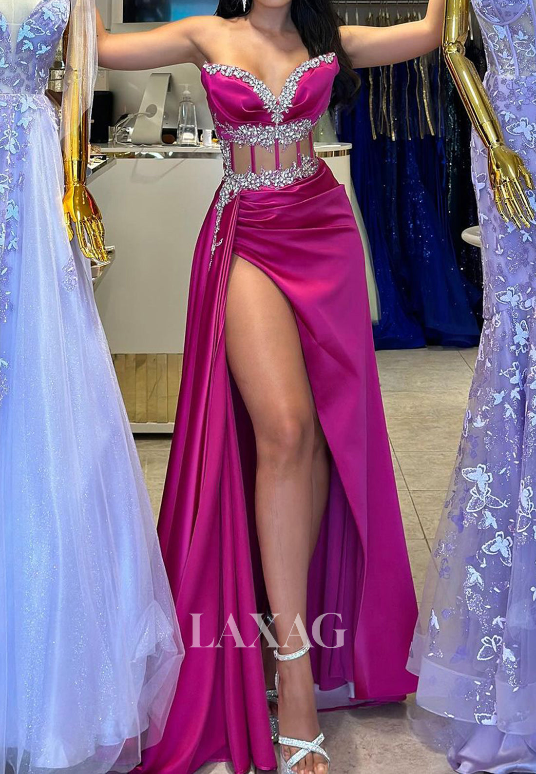 Sweetheart Sleeveless Off-Shoulder Beaded Ruched Mermaid Long Prom Party Dress with High Slit