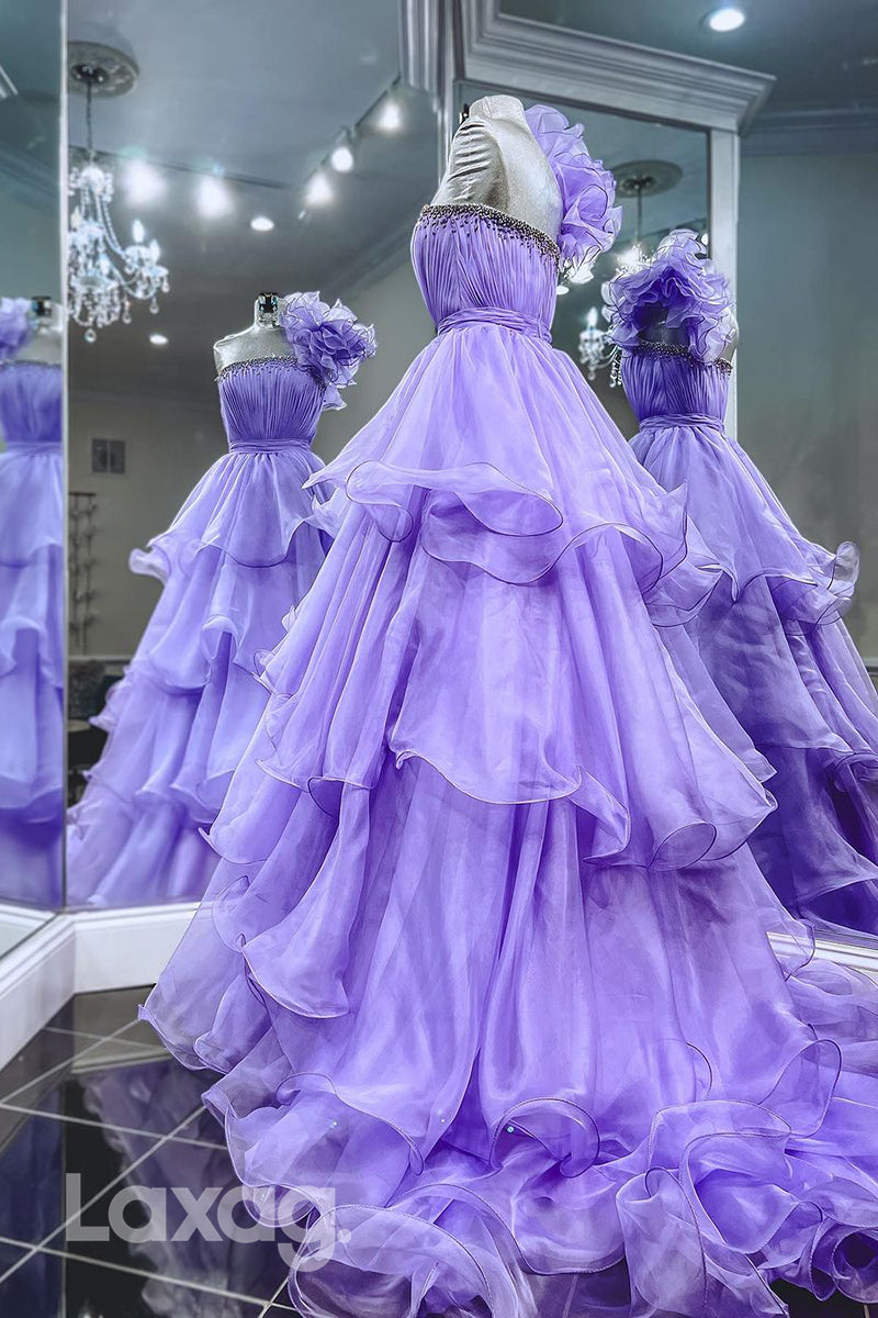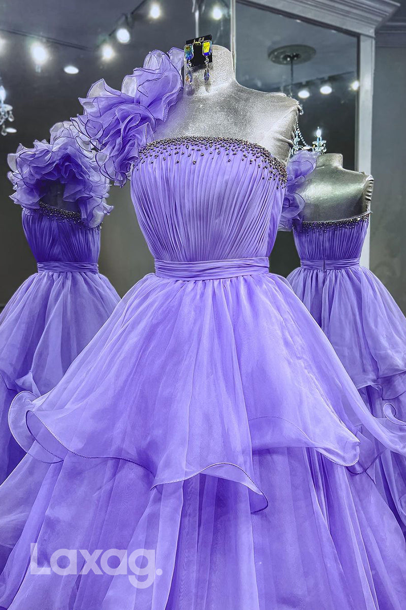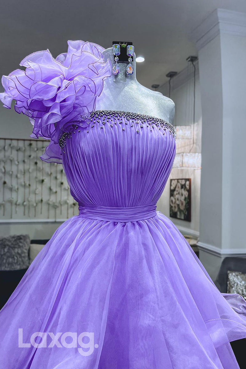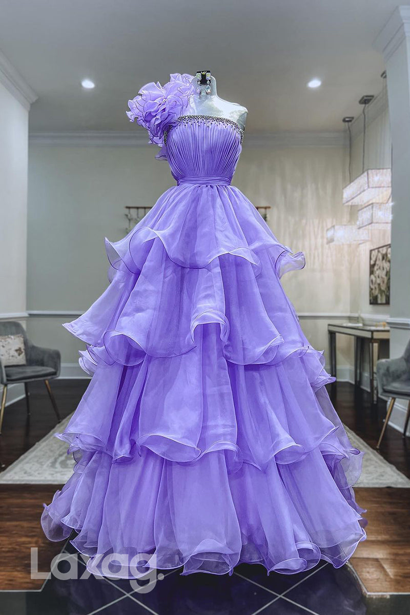 This stylish one-shoulder A Line dress features beautiful ruffles that adds a hint of elegance to your look. The long semi-formal design is perfect for proms and other special occasions, making it a great choice for the modern woman.