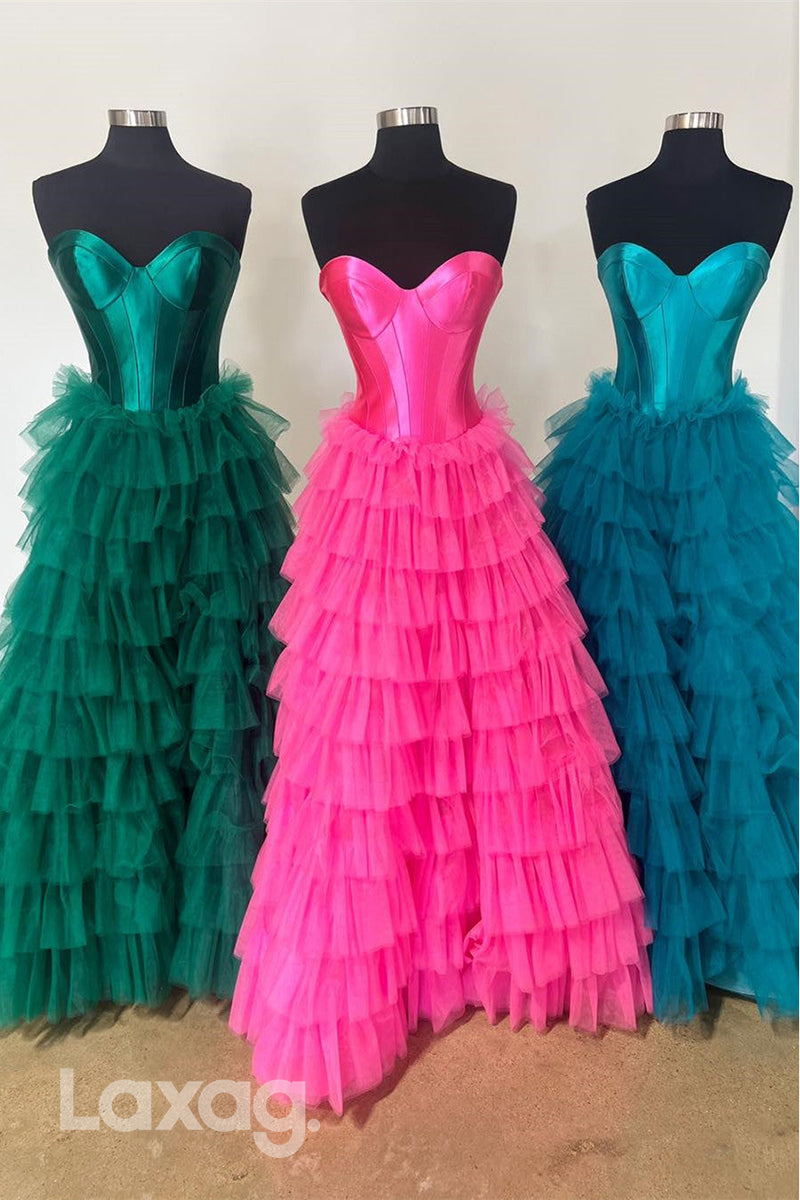 A Line Sweetheart Tulle Ruffles Long Formal Prom Dress