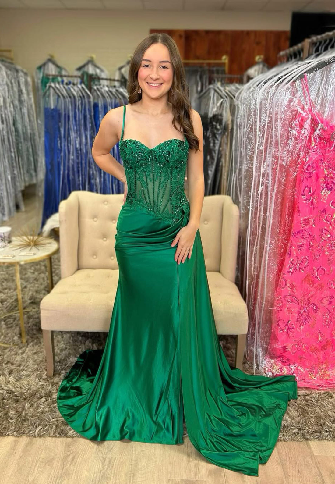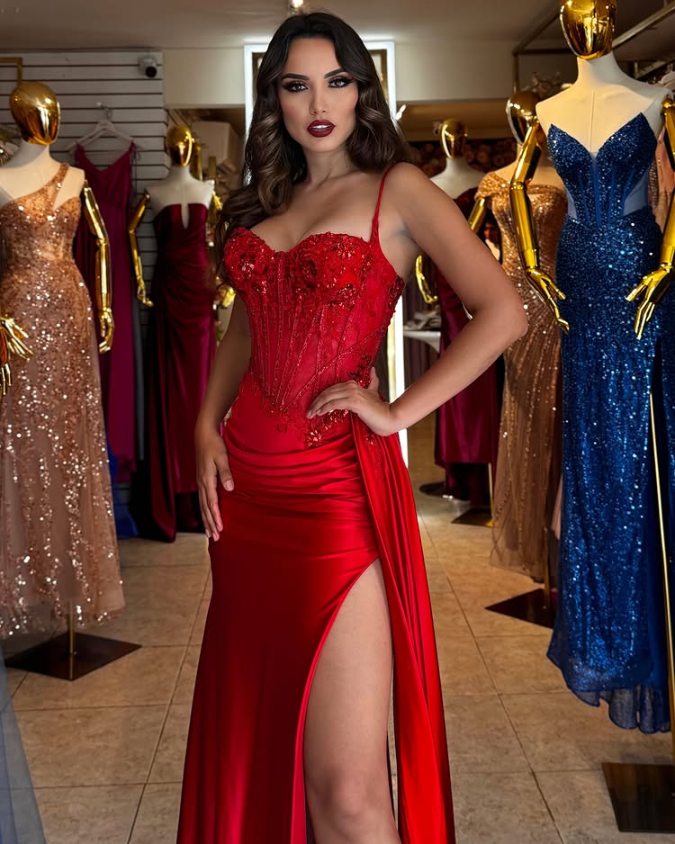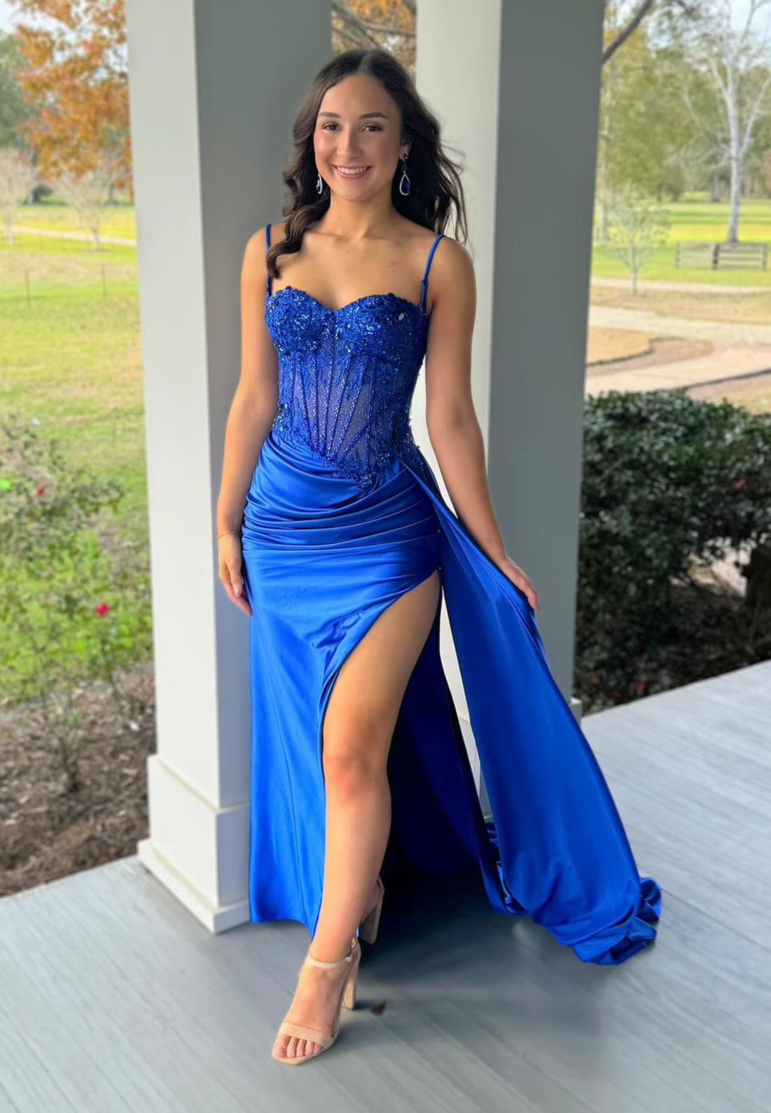 Sweetheart Illusion Lace Appliques Mermaid Long Formal Prom Dress with Slit