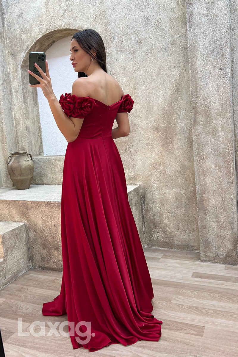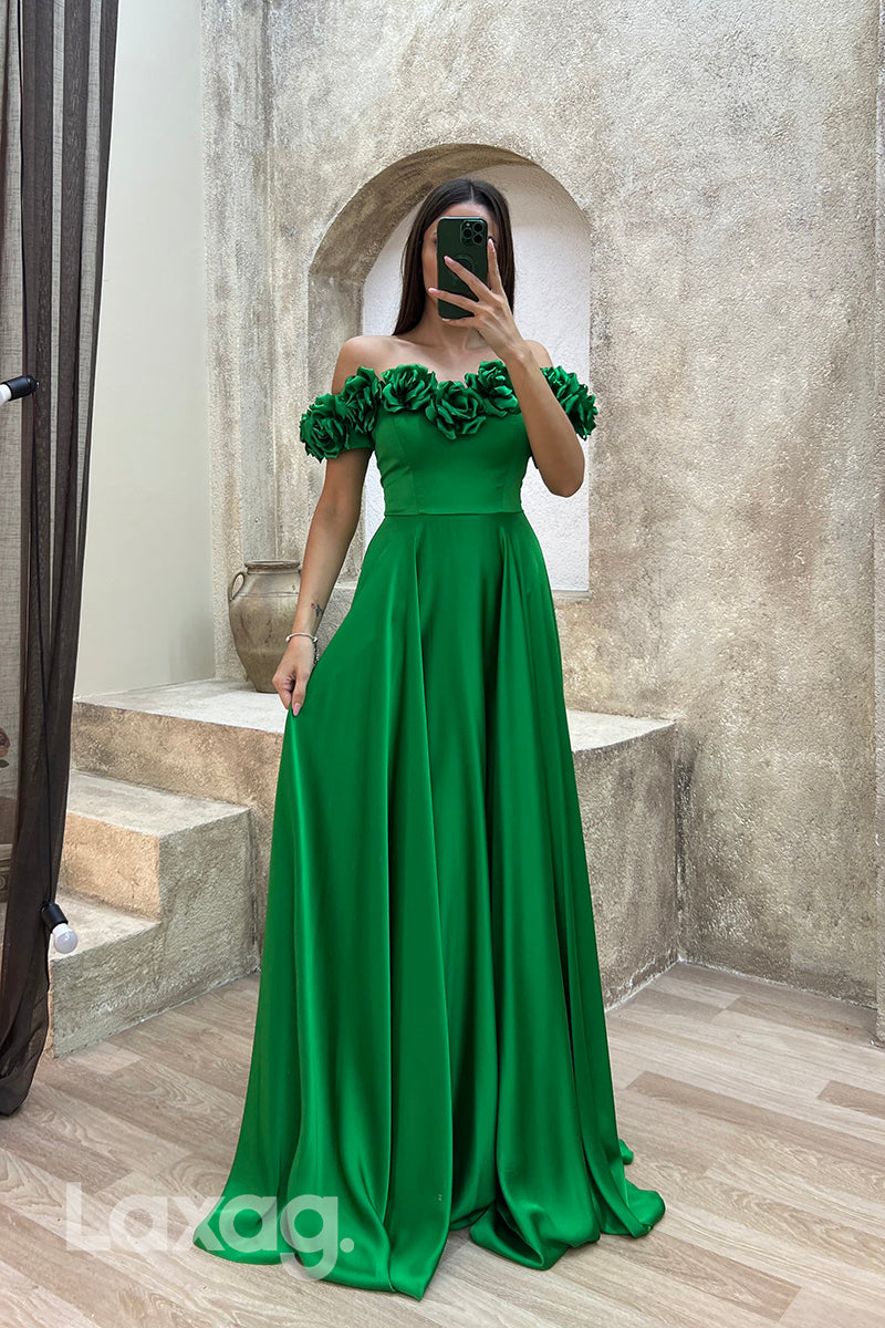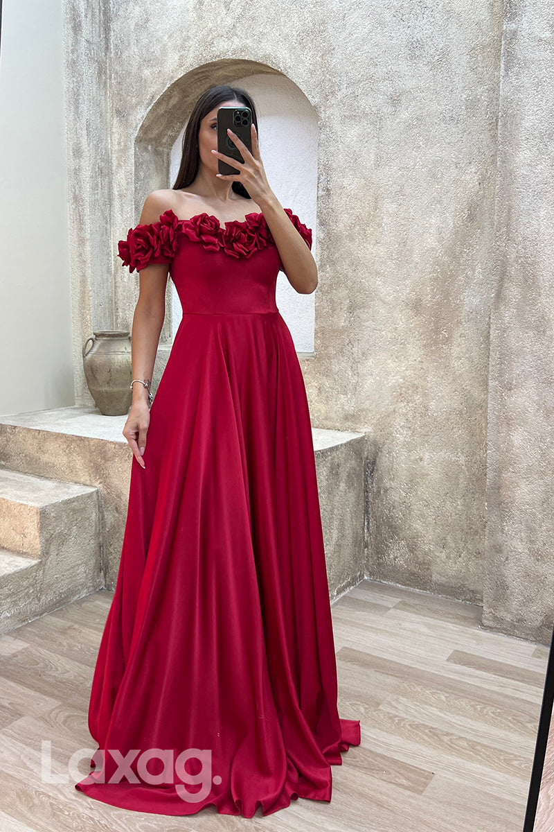 A Line Off Shoulder Flowers Long Formal Prom Dress