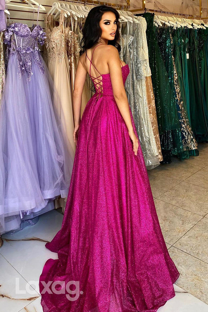 22216 - A-Line Spaghetti Straps Fully Sequins Party Prom Formal Evening Dress with Slit