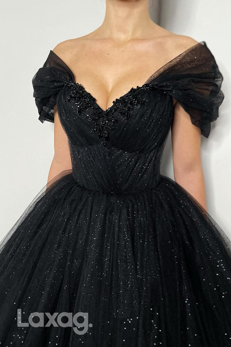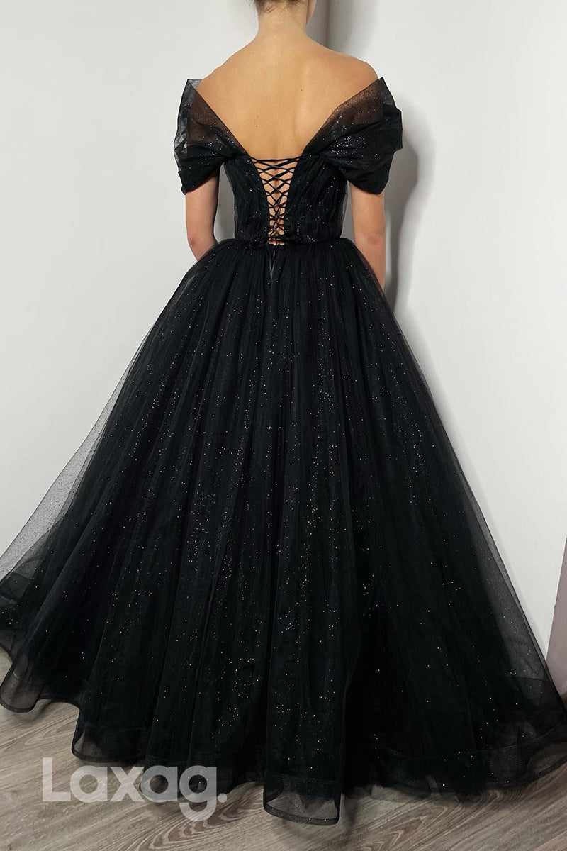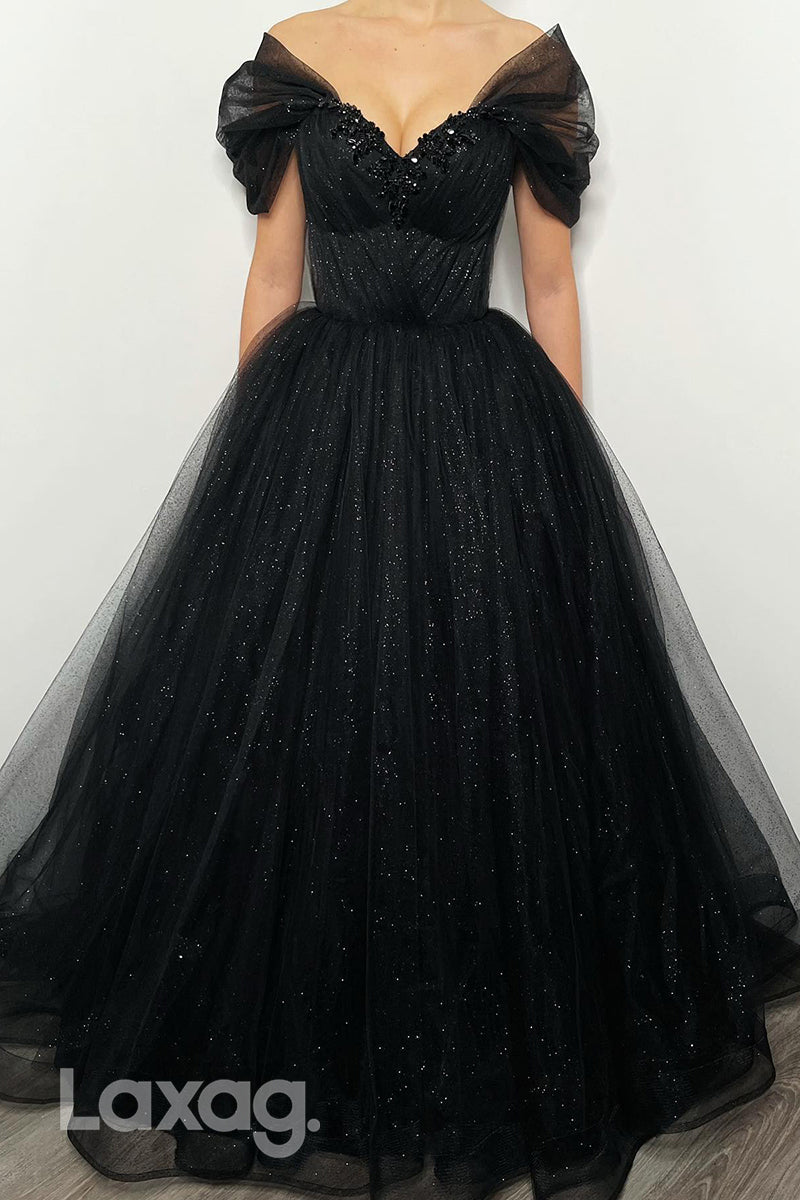 22224 - A-Line Off Shoulder Beaded Fully Sequins Tulle Party Prom Formal Evening Dress