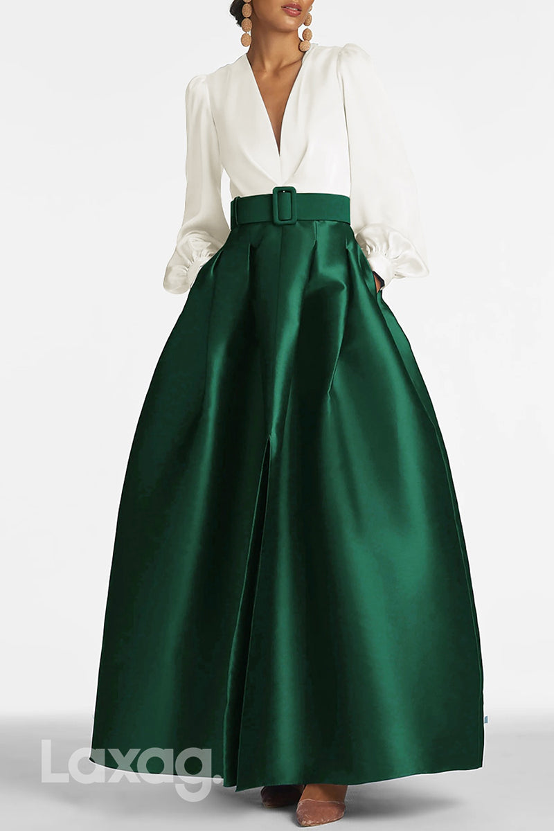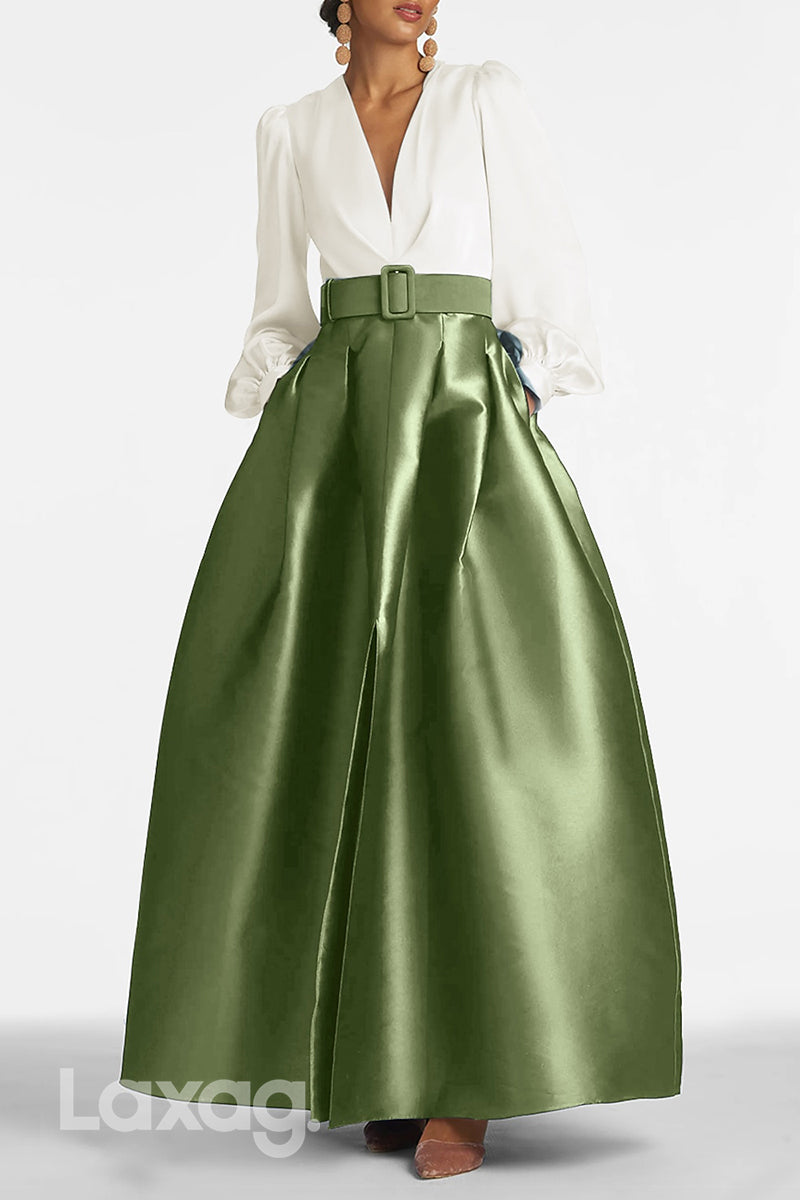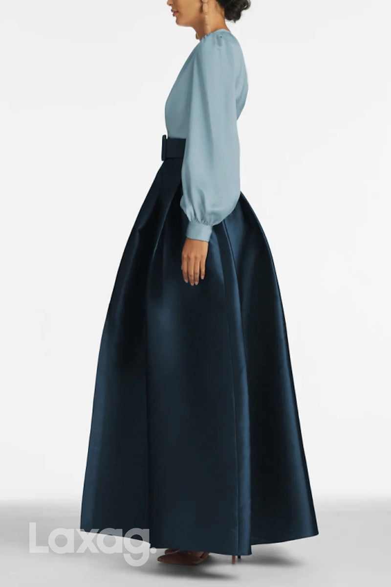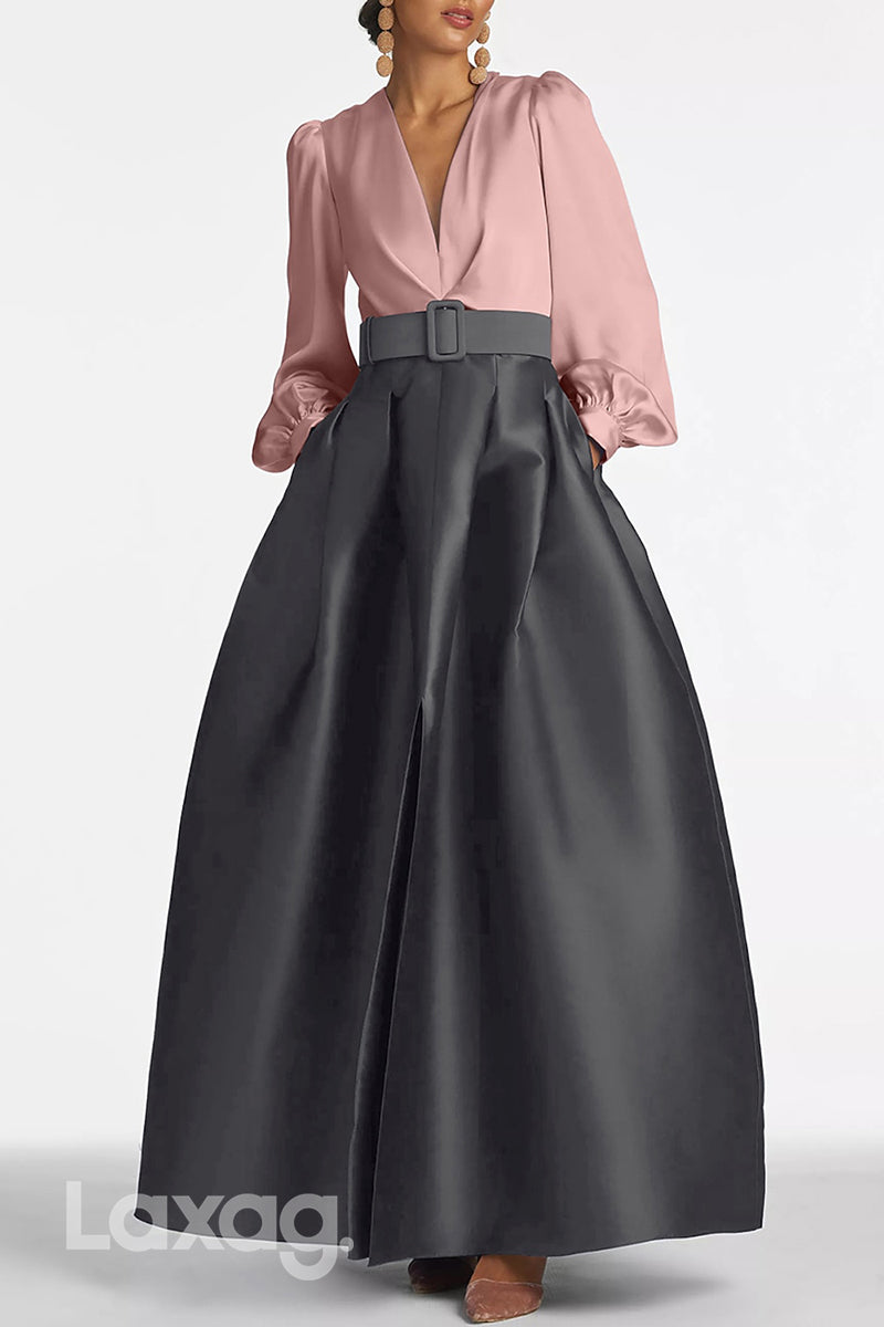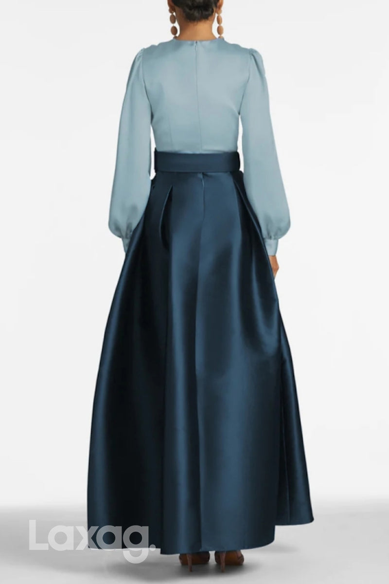 22486 - A-Line V-Neck Empire Belt Long Sleeves Mother of the Bride Dress