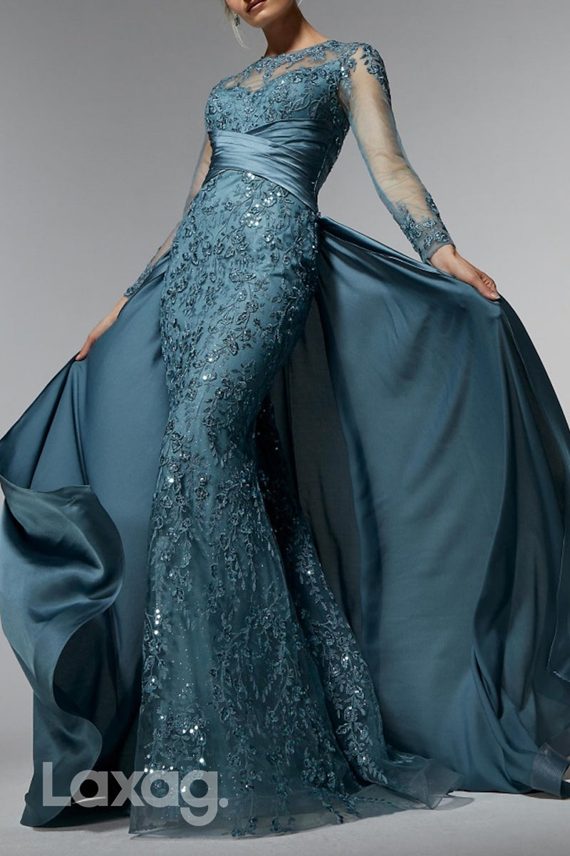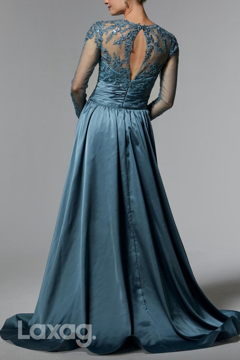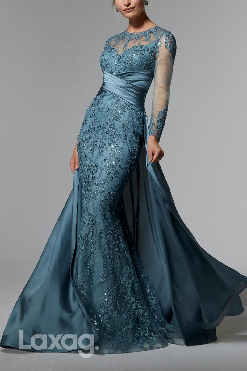 22504 - Trumpet Scoop Long Sleeves Appliques with Train Mother of the Bride Dress