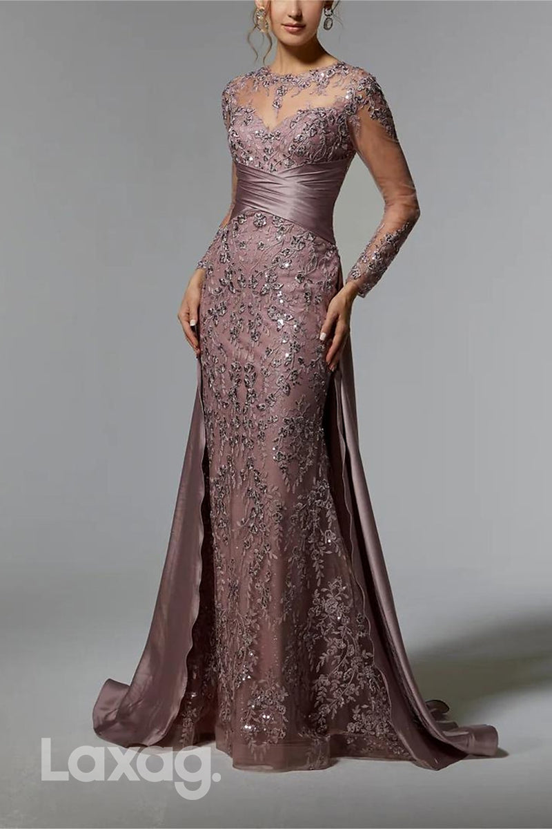 Trumpet Scoop Long Sleeves Appliques with Train Mother of the Bride Dress