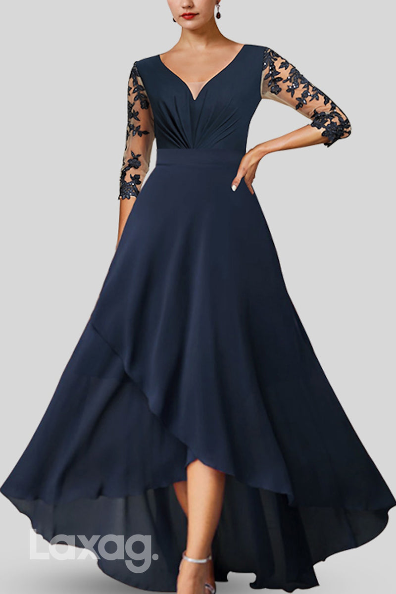 A-Line V-Neck Half Sleeves Appliques Chiffon Mother of the Bride Dress