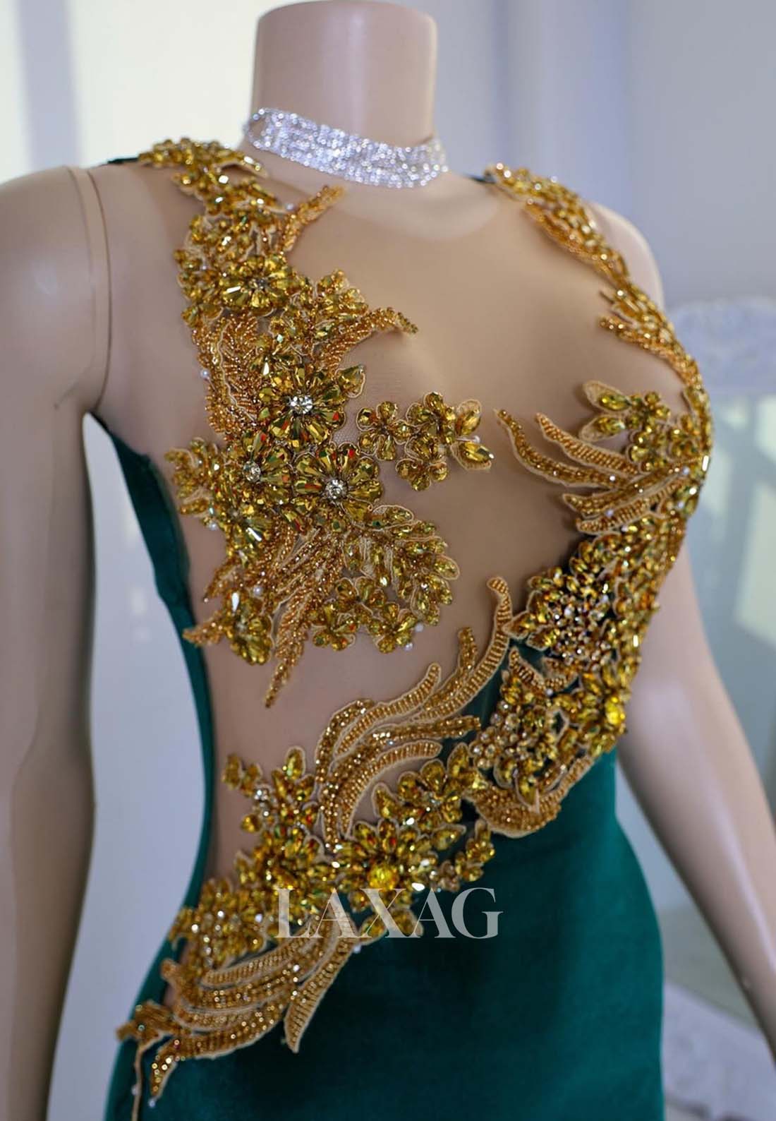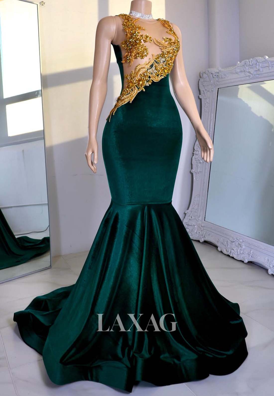 Scoop-Neck Off-Shoulder Sleeveless Beaded Rhinestone Mermaid Prom Dress for Black Girl Slay