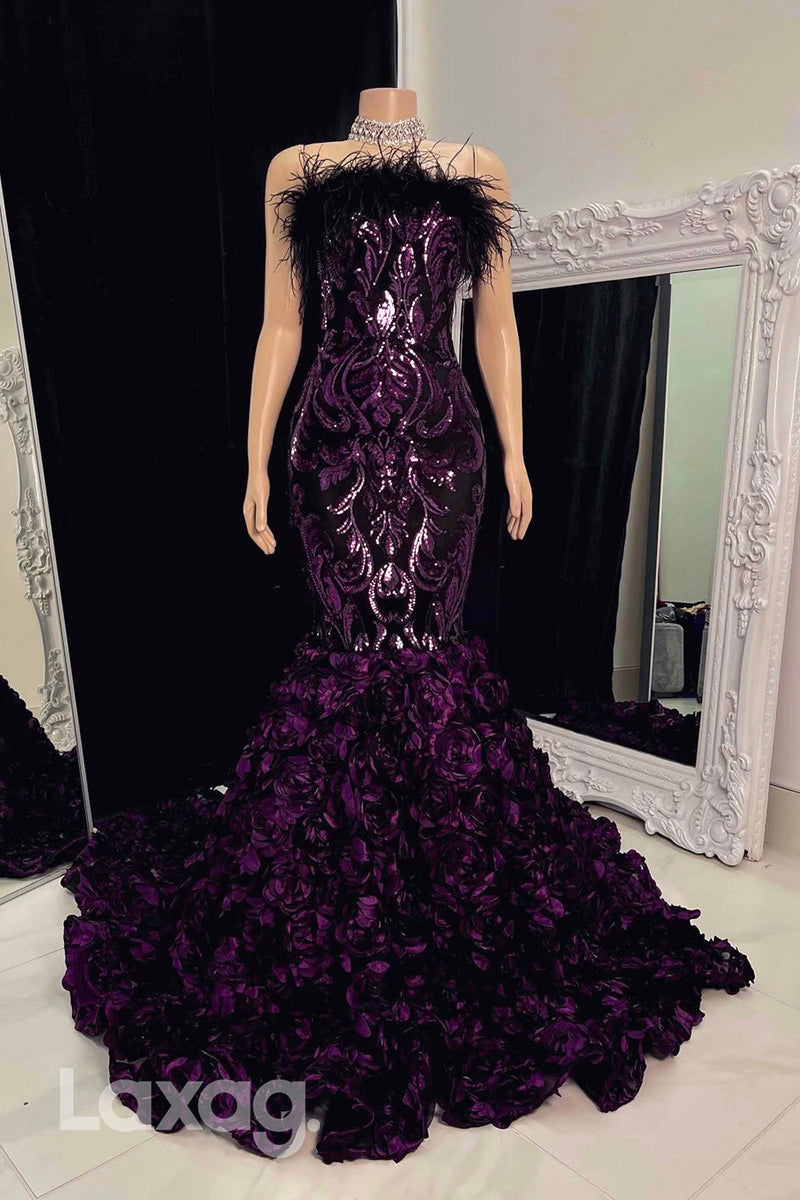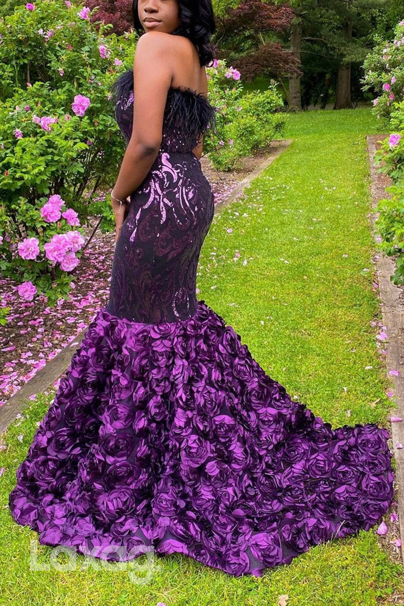 Strapless Sequins Mermaid Appliques Prom Dresses for Black Girl Slay