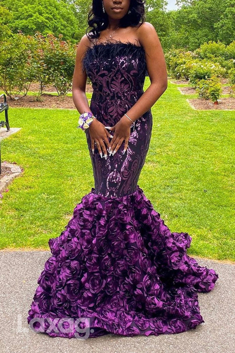22583 - Strapless Sequins Mermaid Appliques Prom Dresses for Black Girl Slay