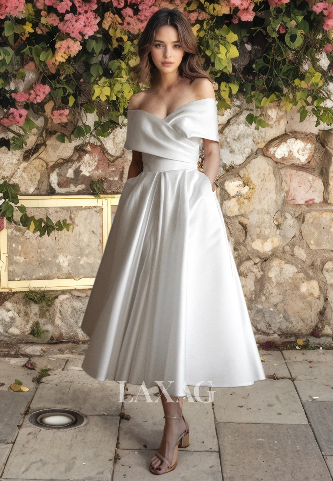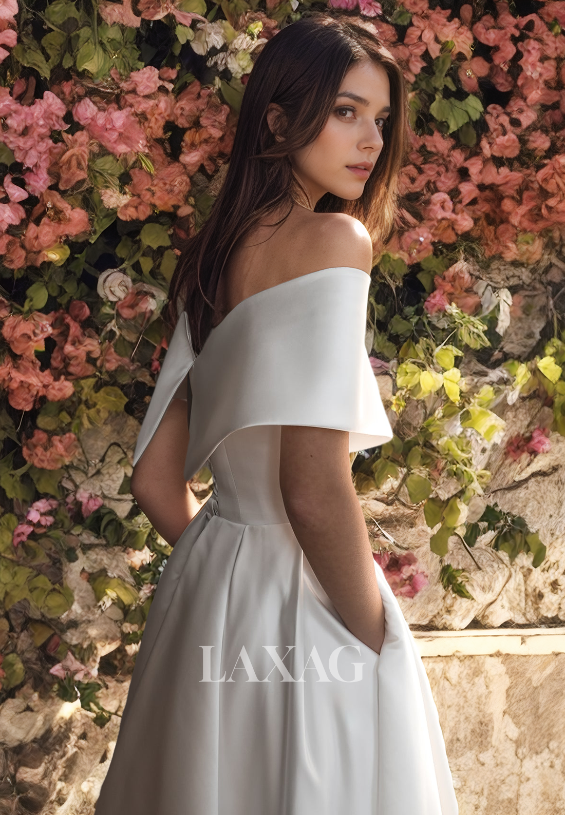 A-Line Off Shoulder Sleek Satin Elegant Wedding Dress