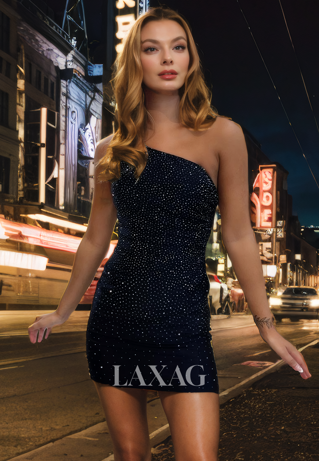 One Shoulder Fully Sequins Cutout Open Back Fitted Party Homecoming Dress
