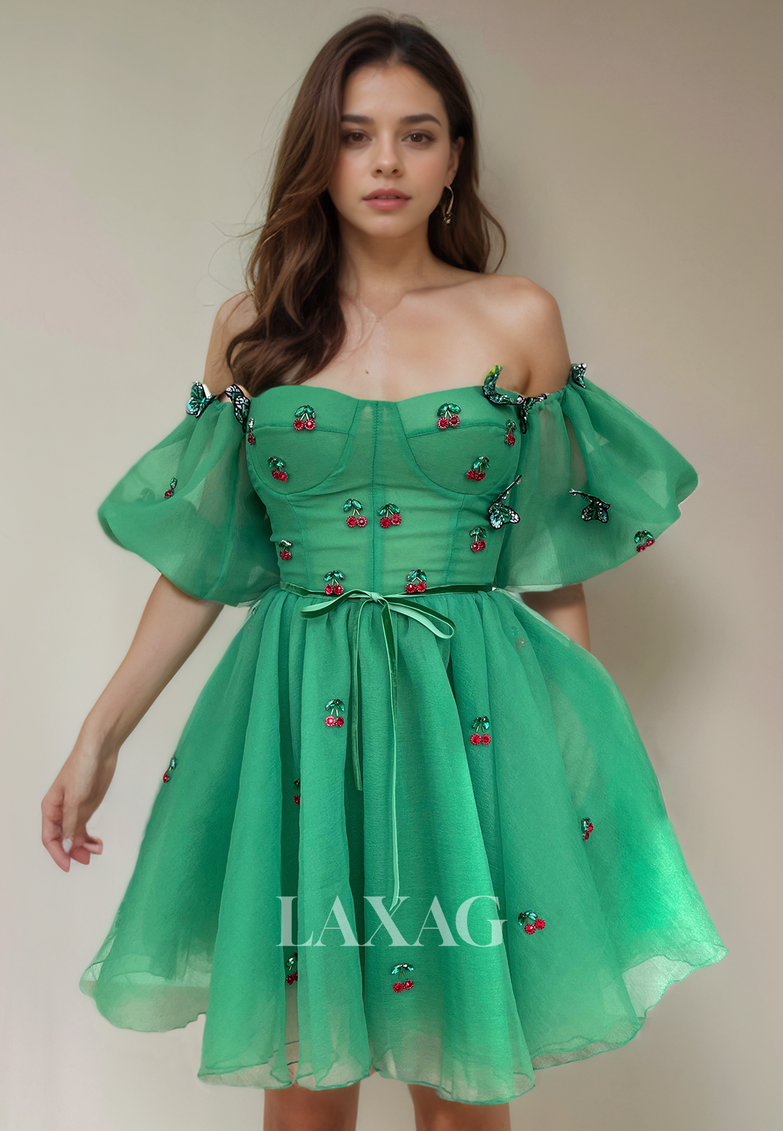 A-Line Off Shoulder Beaded Tulle Elegant Party Homecoming Dress