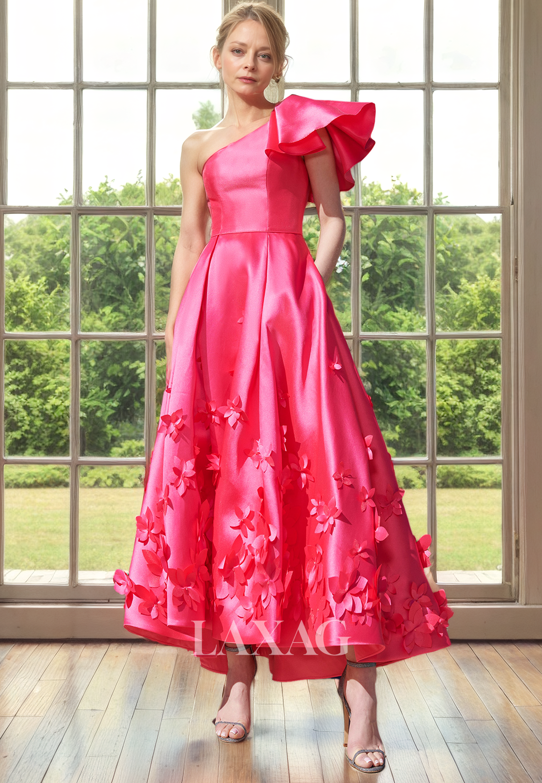 A-Line One Shoulder Floral Embossed Sleek Satin Mother of the Bride Dress