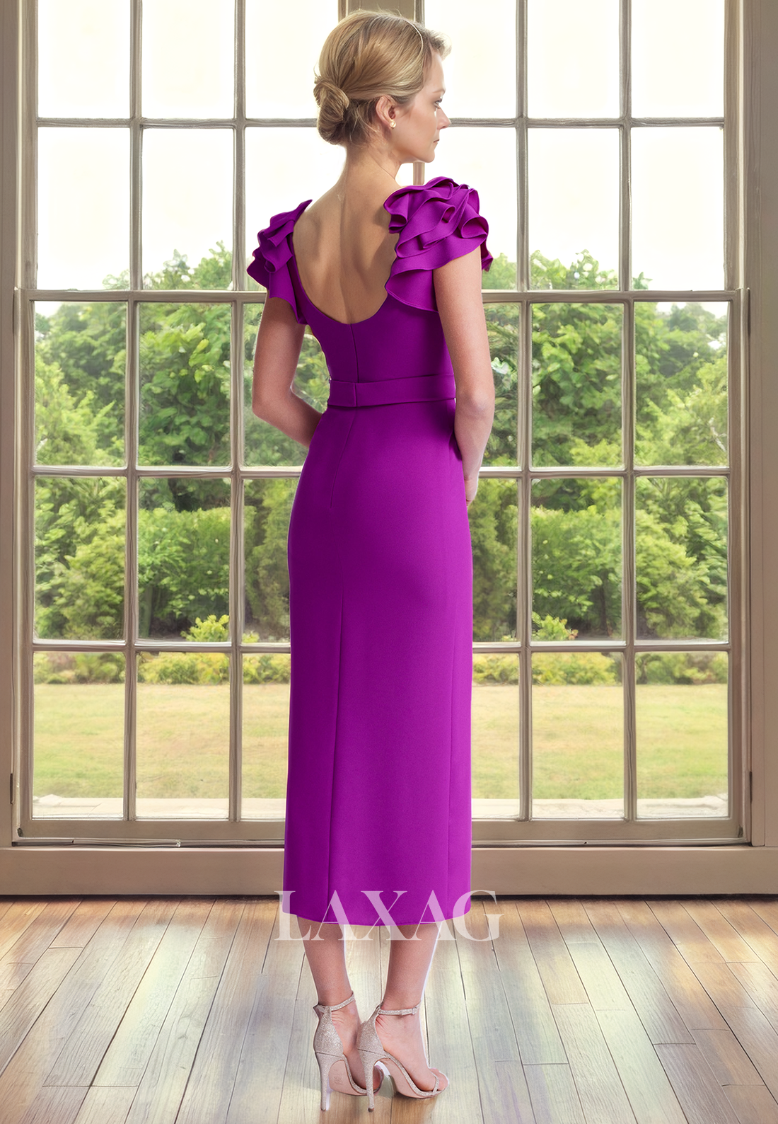 V-Neck Cap Sleeves Sleek Satin Ankle-Length Mother of the Bride Dress with Slit