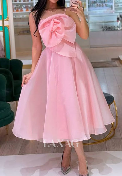 Spaghetti Straps Off-Shoulder Sleeveless A-Line Prom Dress Floral Embellished Pleated Midi Formal Gowns