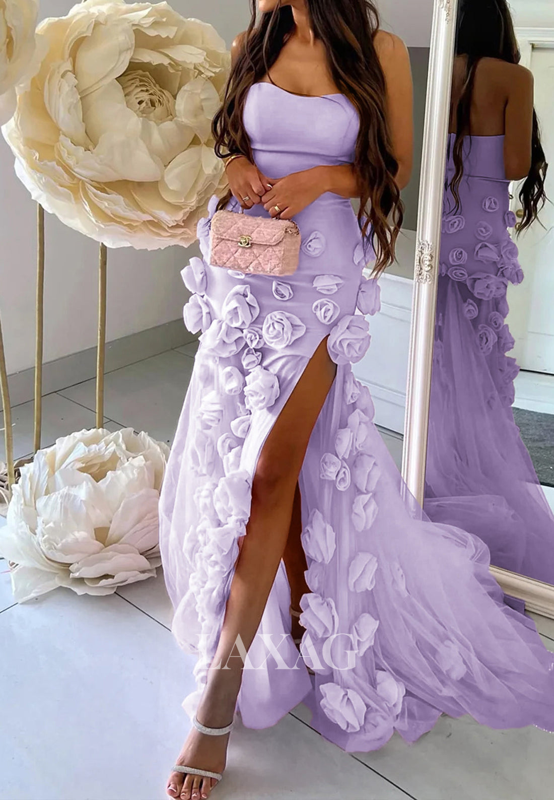 Elevate your evening look with our stunning Sweetheart Off-Shoulder Sleeveless Evening Gowns. The floral embellishments and mermaid silhouette add a touch of elegance, while the tulle train creates a beautiful and flowy finish. Perfect for any formal event.