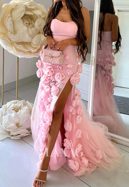 Sweetheart Off-Shoulder Sleeveless Evening Gowns Floral Embellished Mermaid Prom Dress with Tulle Train