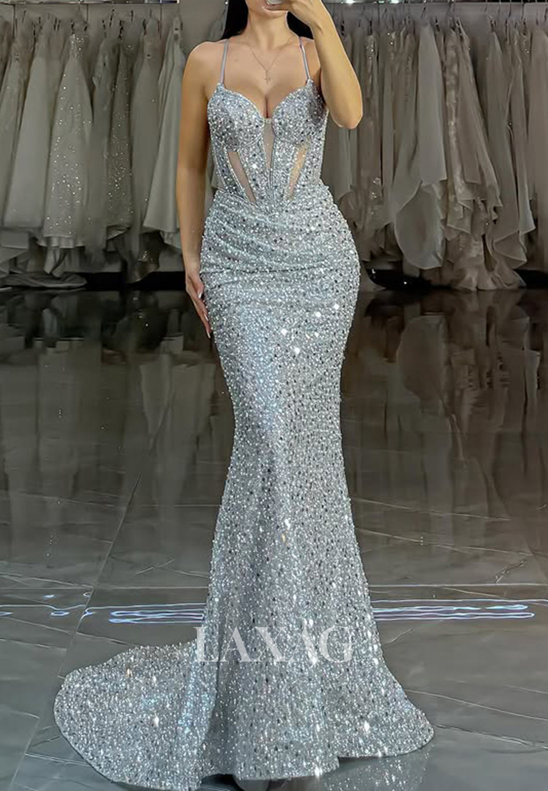 Spaghetti Straps Sweetheart Sleeveless Meramid Prom Dress Off-Shoulder Fully Sequined Beaded Party Gowns