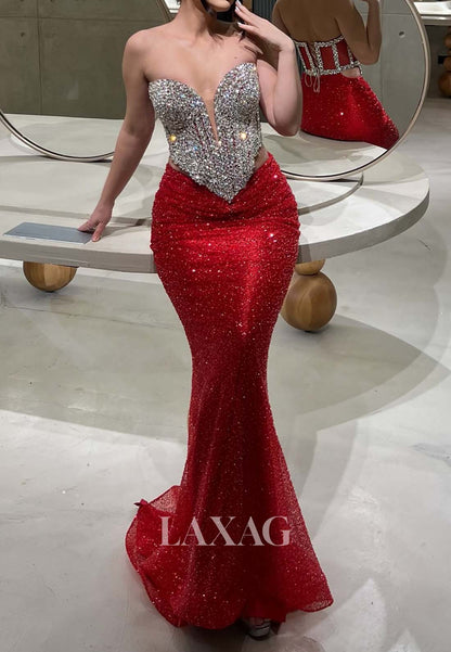 Plunging V-Neck Off-Shoulder Sleeveless Party Gowns Fully Sequined Beaded Mermaid Prom Dress