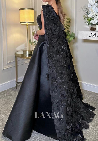 Tube Top Floral Embellished Satin Formal Gowns Sleeveless A-Line Evening Dress with Overlay