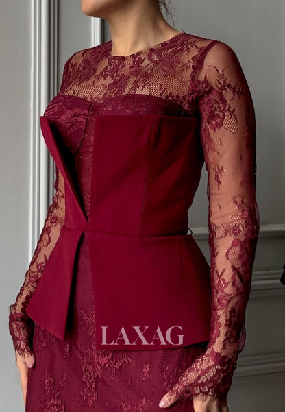 Scoop-Neck Long-Sleeves Floor-Length Formal Gowns Allover Lace Pleated Mermaid Evening Dress
