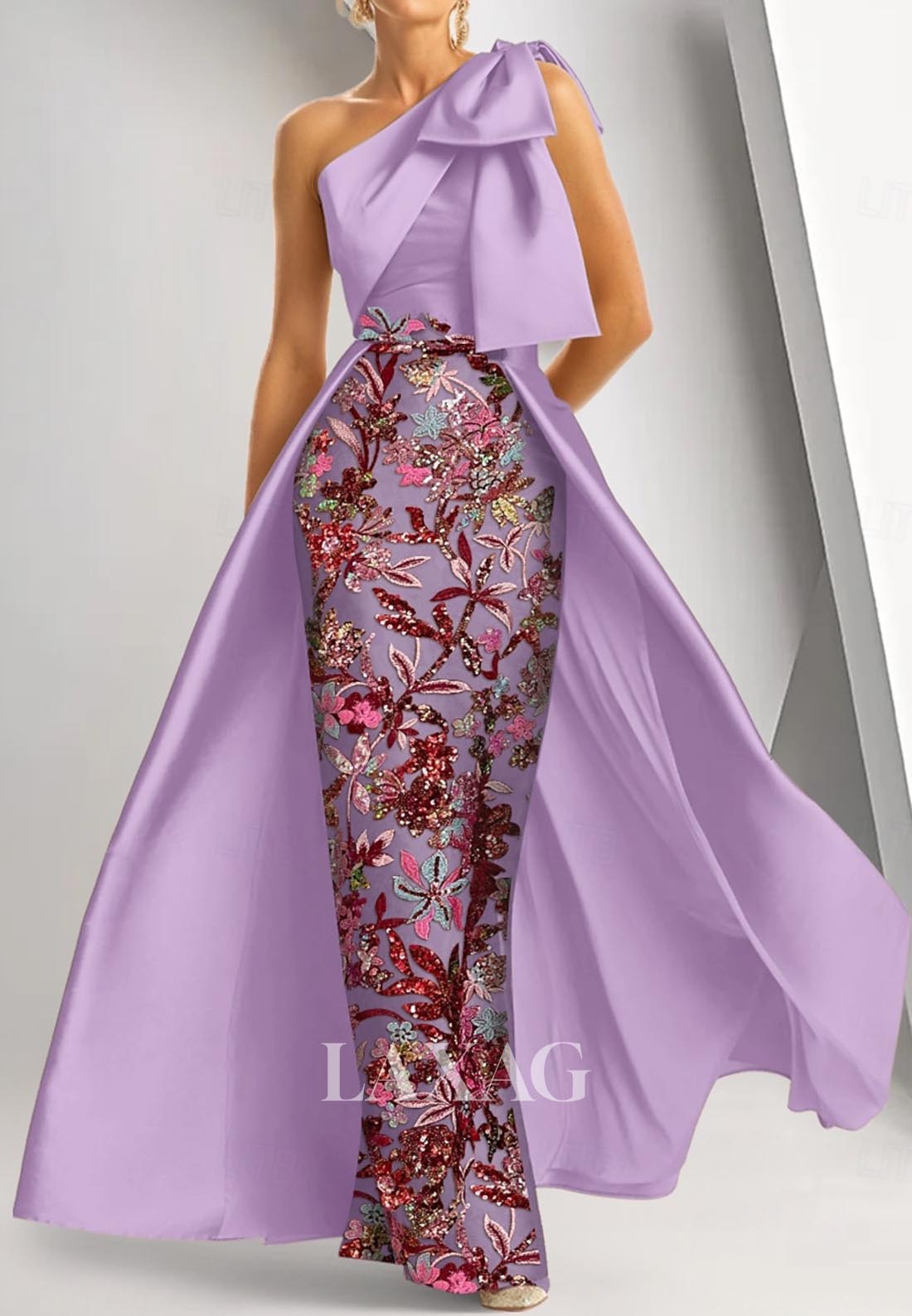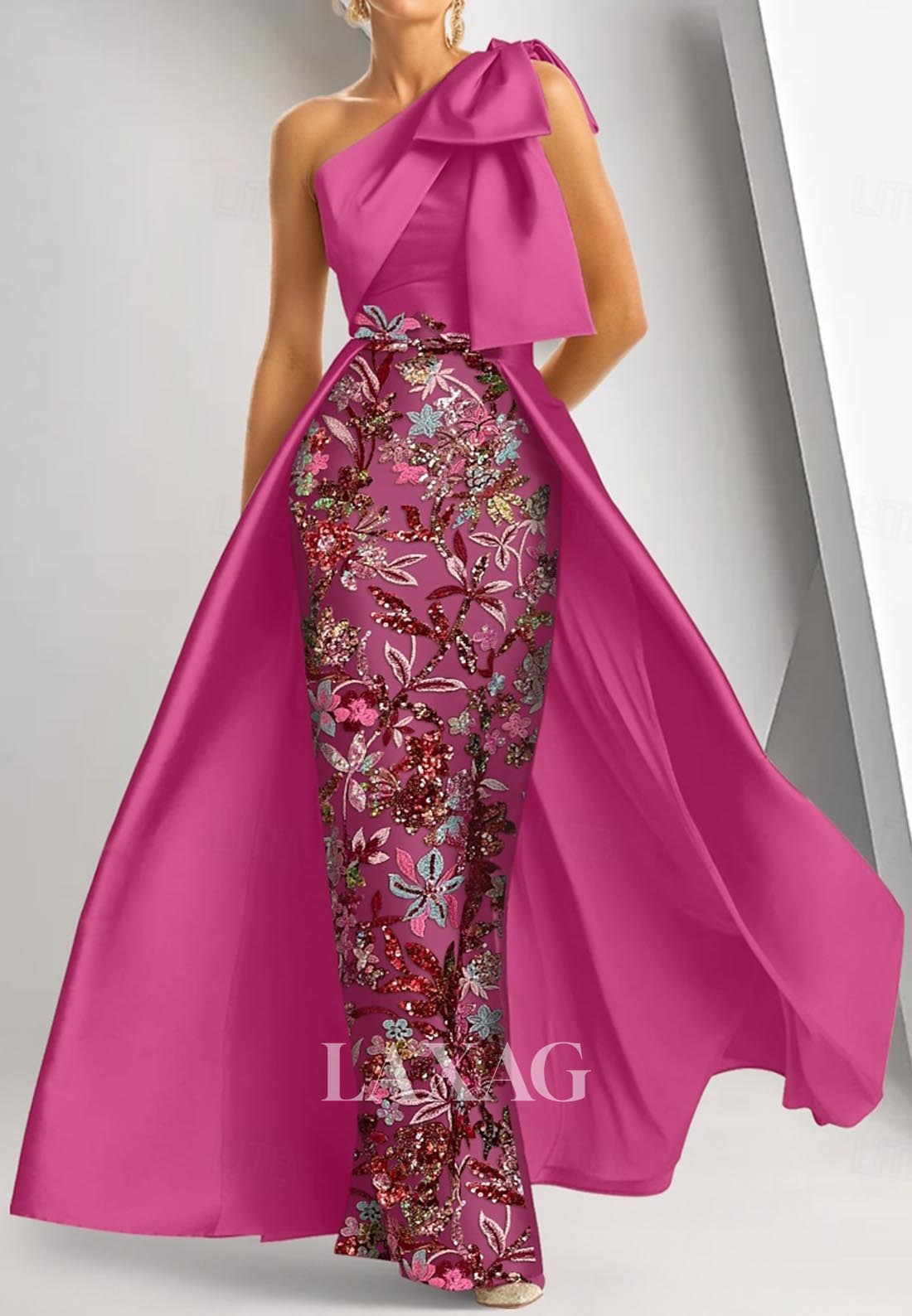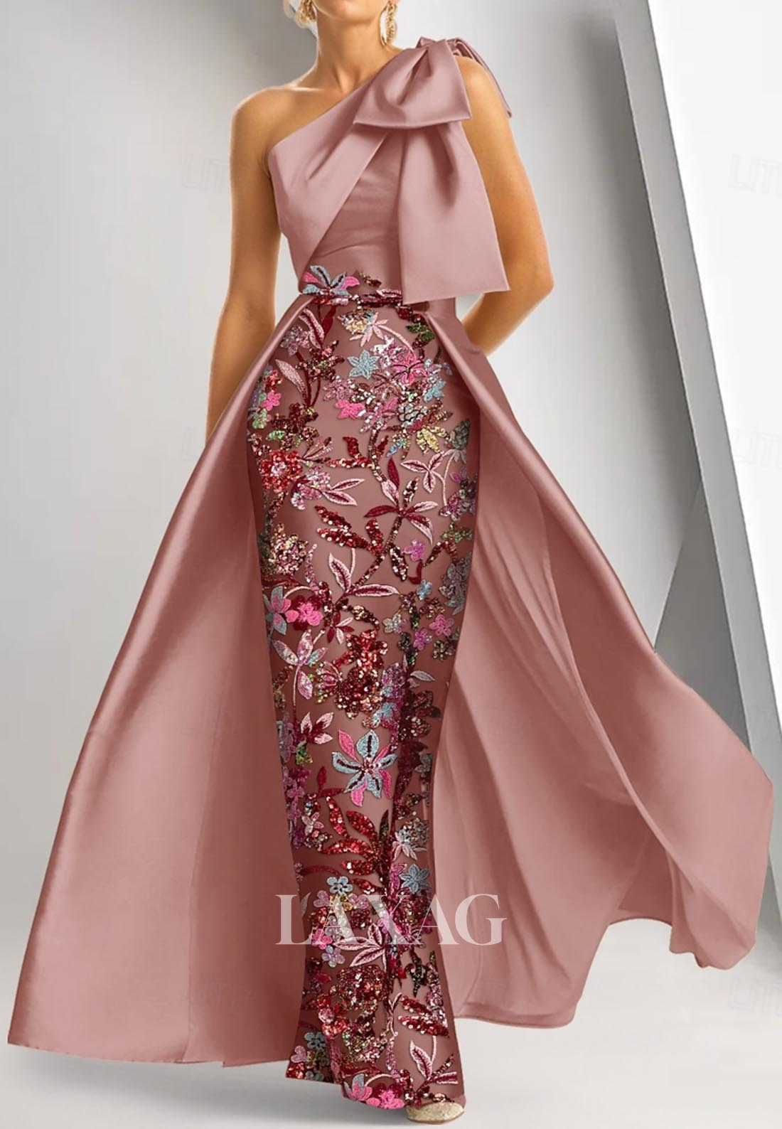 Sleeveless Asymmetrical-Neck Mermaid Evening Dress Sequined Embroidered Floor-Length Formal Gowns
