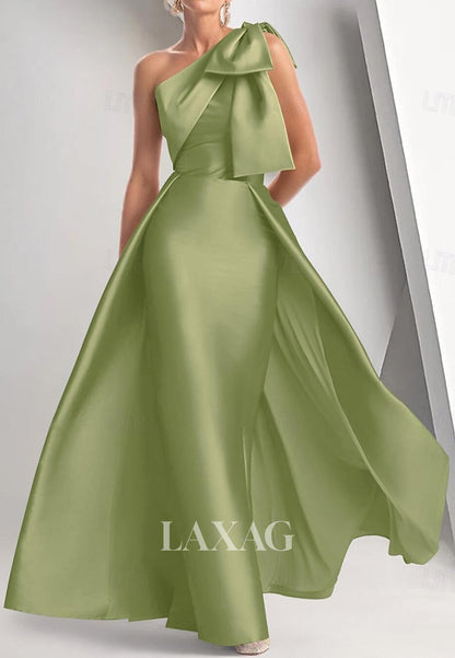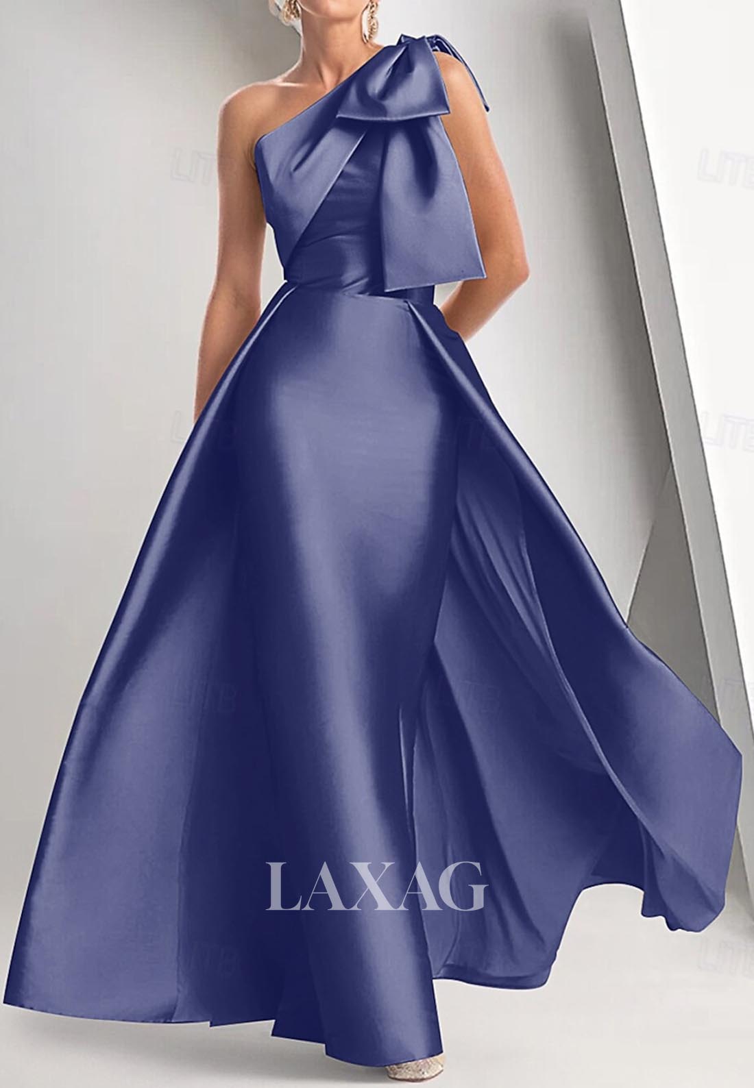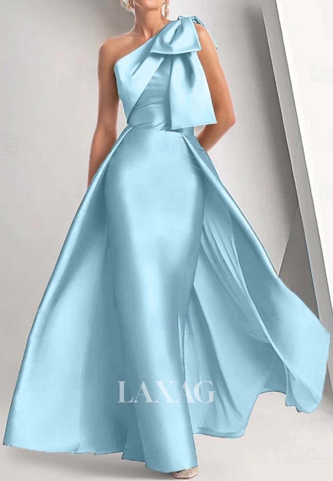 Asymmetrical-Neck Sleeveless Mermaid Evening Dress One-Shoulder Satin Formal Gowns with Bow