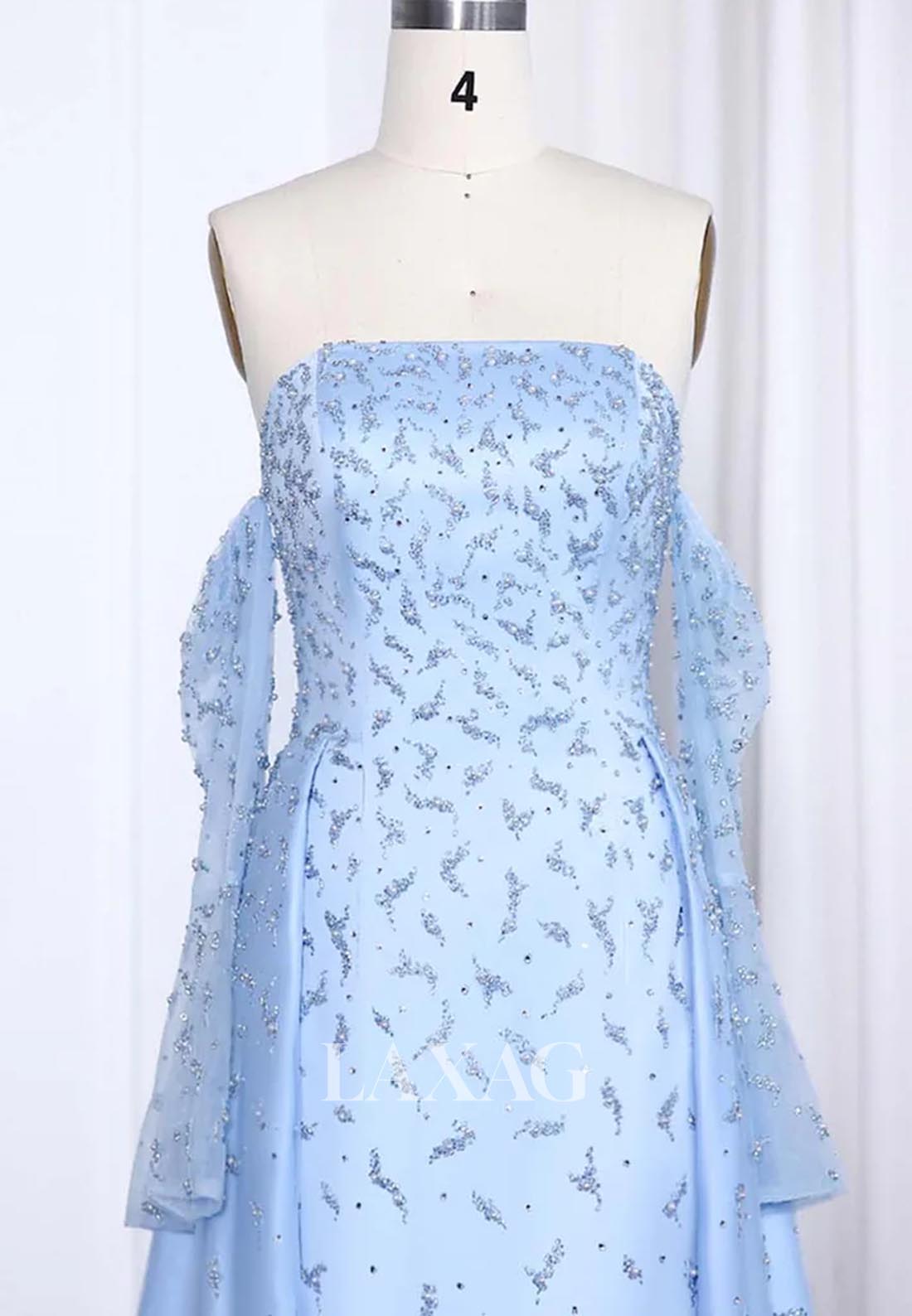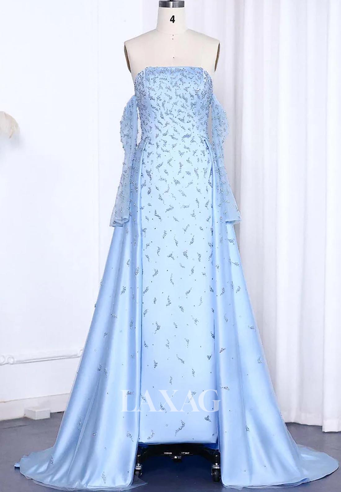 Off-Shoulder Tube Top Sleeveless Mermaid Prom Dress Beaded Satin Sweep Train Evening Gowns