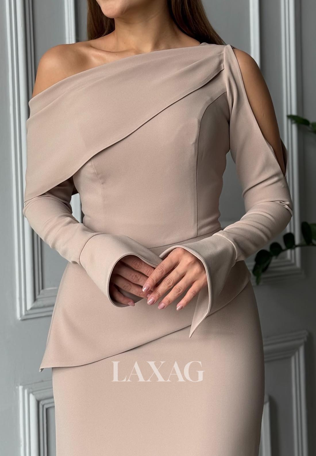 Off-Shoulder Asymmetrical-Neck Mermaid Evening Dress Long-Sleeves Floor-Length Formal Gowns