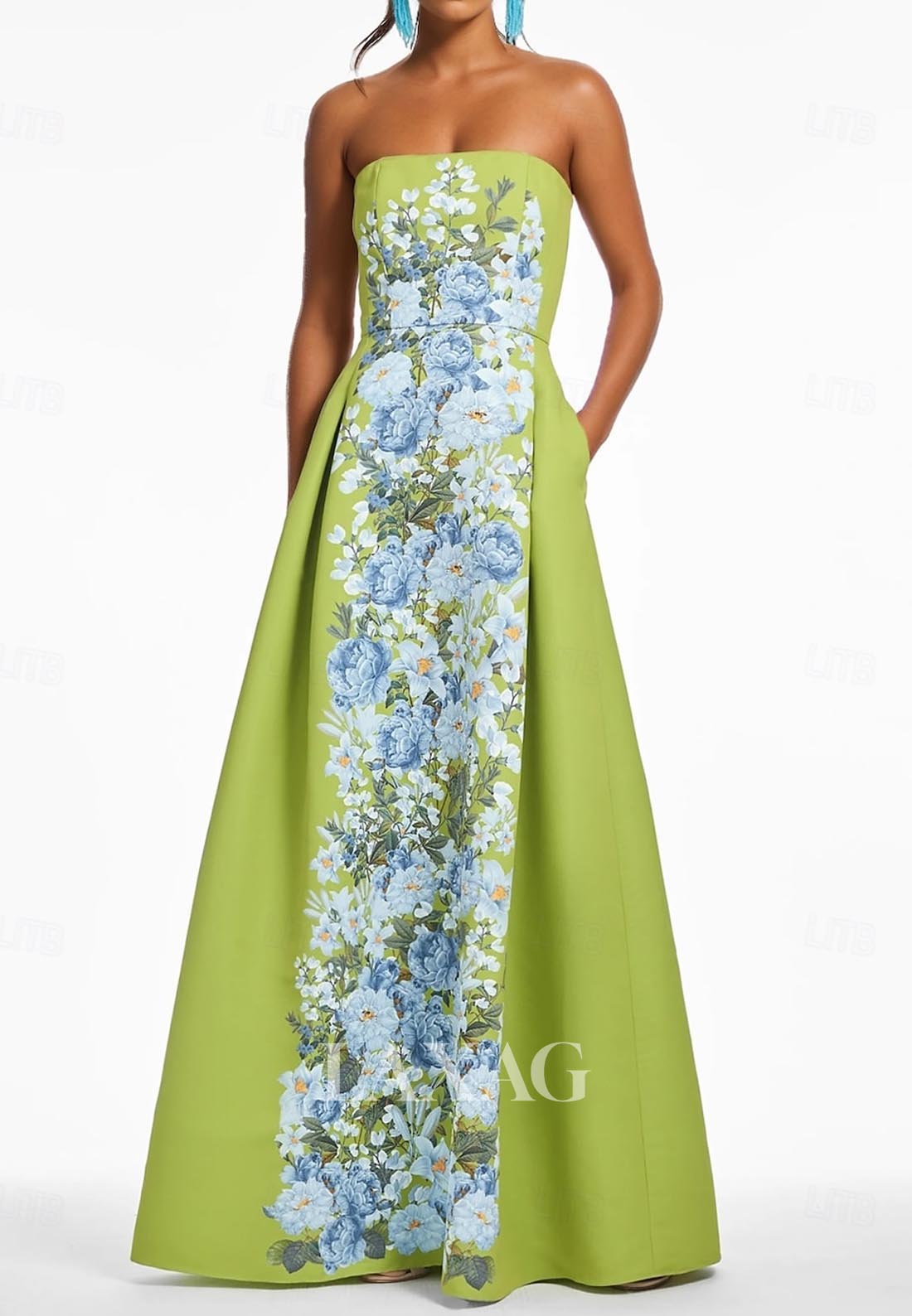 Tube Top Off-Shoulder A-Line Evening Dress Long-Sleeves Applique Floor-Length Formal Gowns
