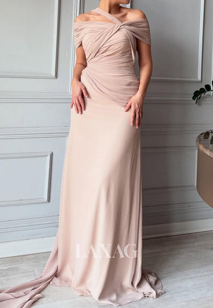 Make a statement with this stunning Asymmetrical-Neck Mermaid Evening Dress. The sleeveless design and pleated details create a flattering silhouette, while the luxurious chiffon fabric flows gracefully into a sweep train. Perfect for galas, formal events, or weddings, this gown combines sophisticated elegance with head-turning appeal that will leave a lasting impression.