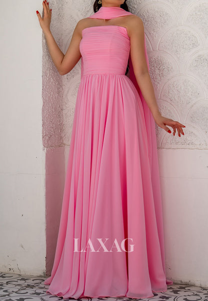 This elegant tube top evening dress features a sleeveless, off-shoulder design that beautifully highlights your neckline and shoulders. Crafted from soft, pleated chiffon, its A-line silhouette offers a flattering fit that flows gracefully with every step. Perfect for formal occasions, this simple yet sophisticated gown combines comfort and style to ensure you stand out with timeless charm.