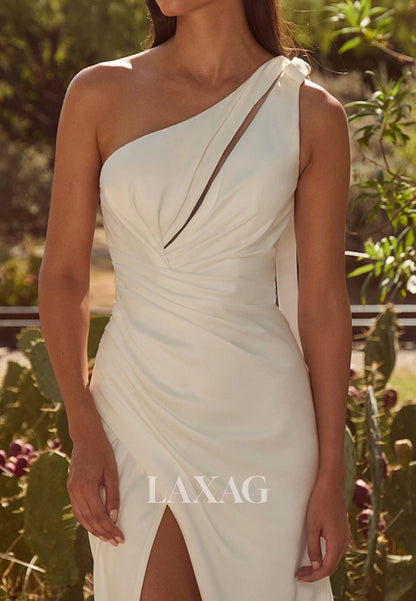 Asymmetrical-Neck Sleeveless Pleated Off-Shoulder High Slit Chiffon Mermaid Wedding Dress