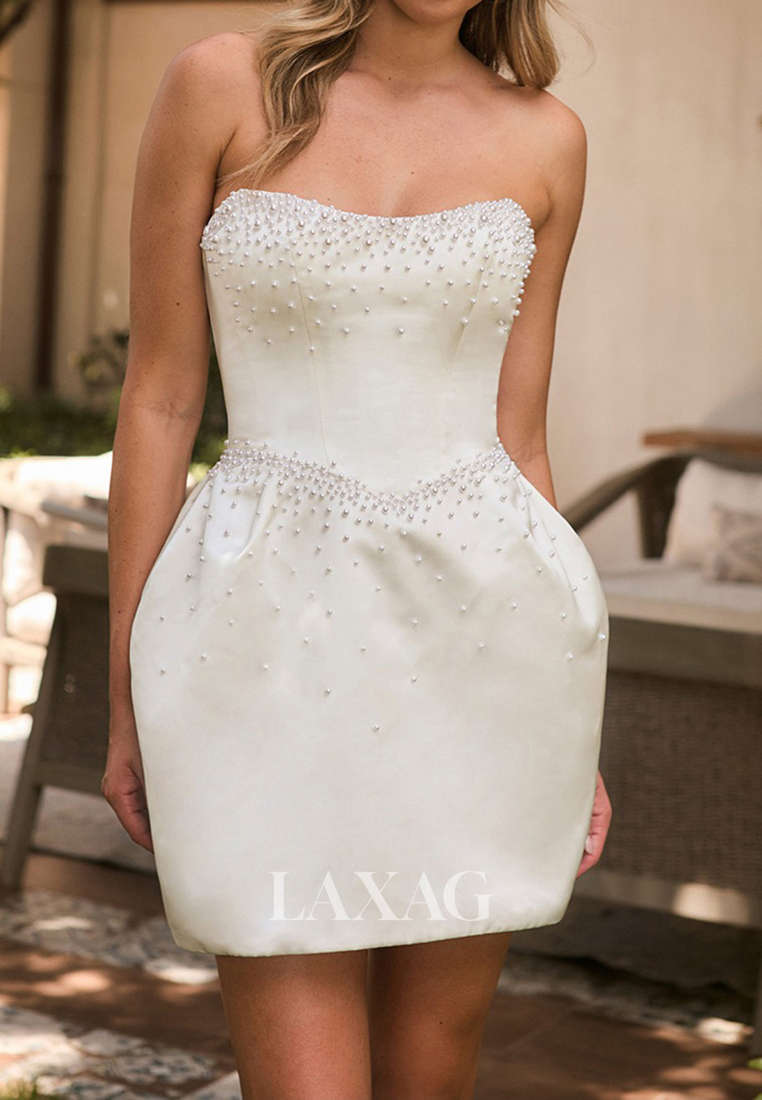 Scoop-Neck Sleeveless Short Mermaid Wedding Dress Beaded Satin Boho Beach Bride Gowns