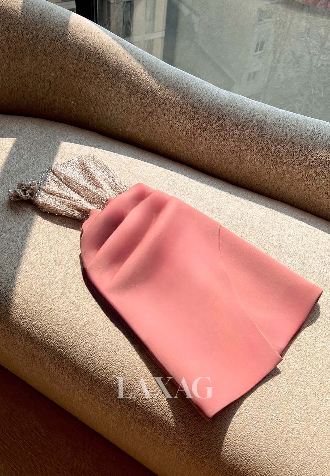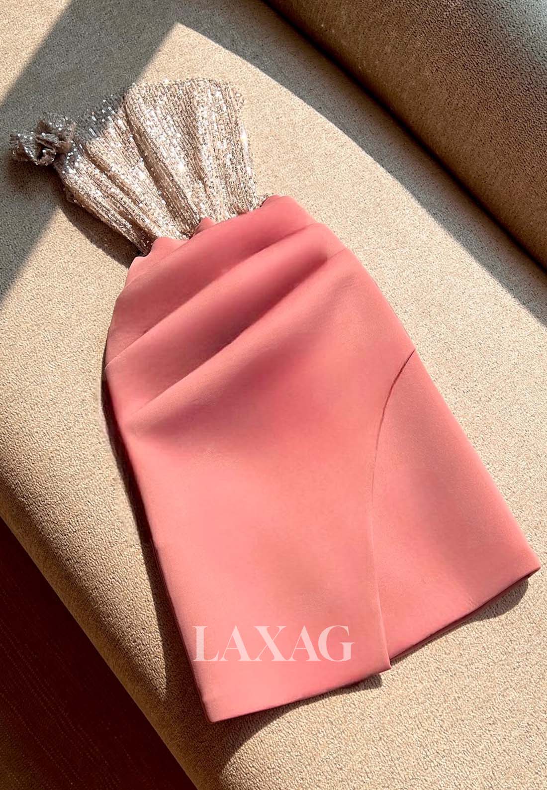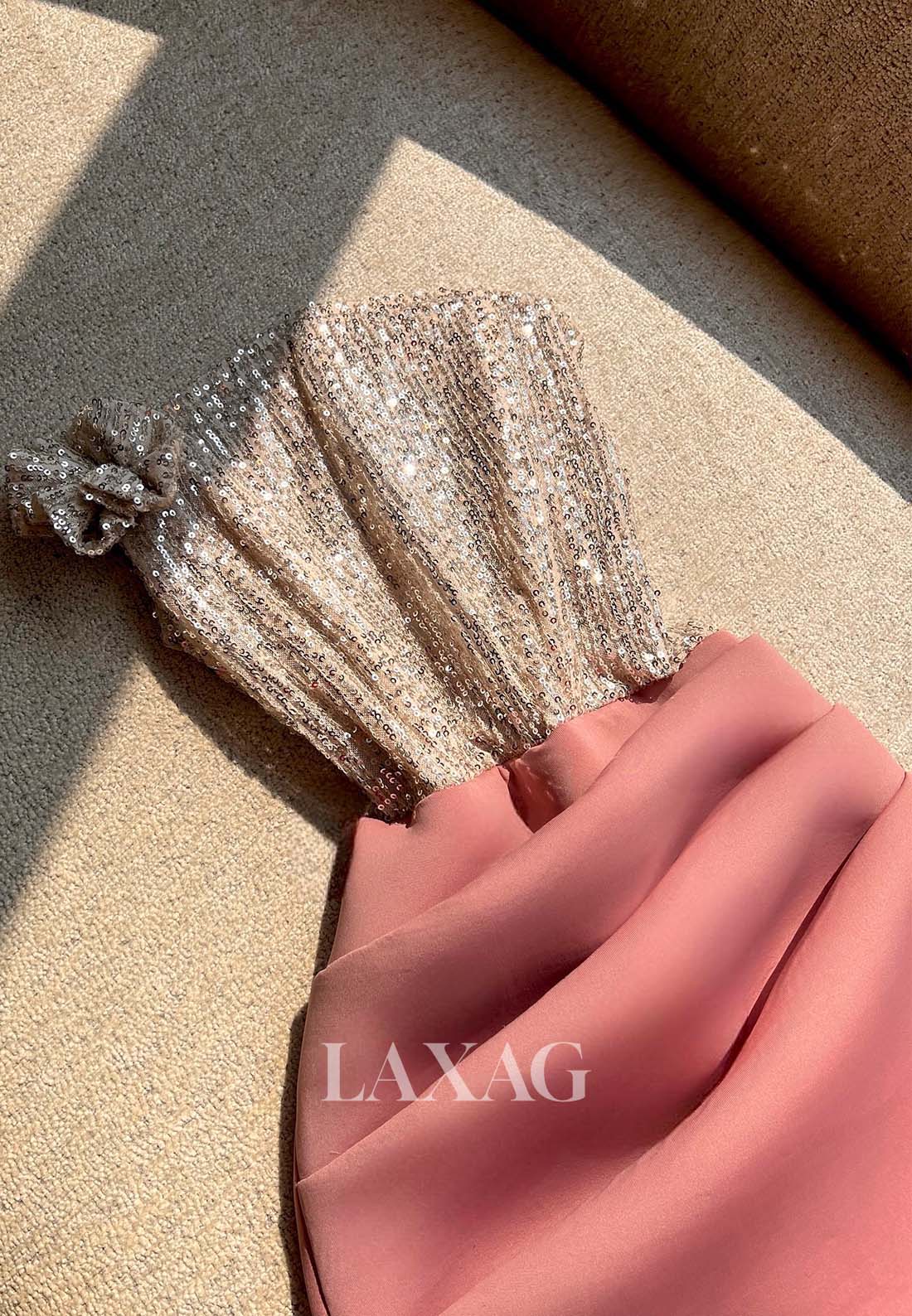 Sleeveless Sequined Mermaid Homecoming Dress Off-Shoulder Pleated Satin Party Gowns