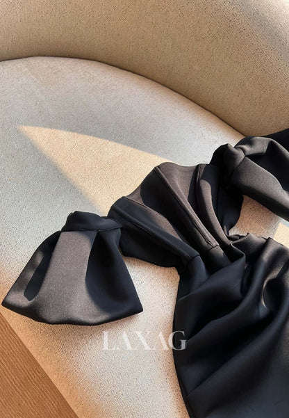 Sweetheart Puff-Sleeves Mermaid Homecoming Dress Off-Shoulder Pleated Satin Short Party Gowns