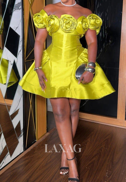 Off-Shoulder Sleeveless Floral Embellished Pleated Satin A-Line Party Homecoming Dress