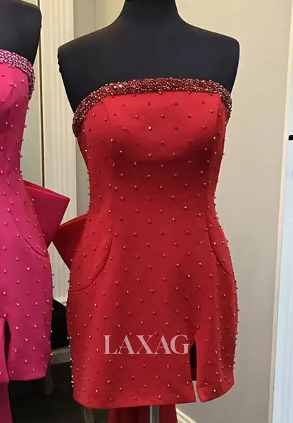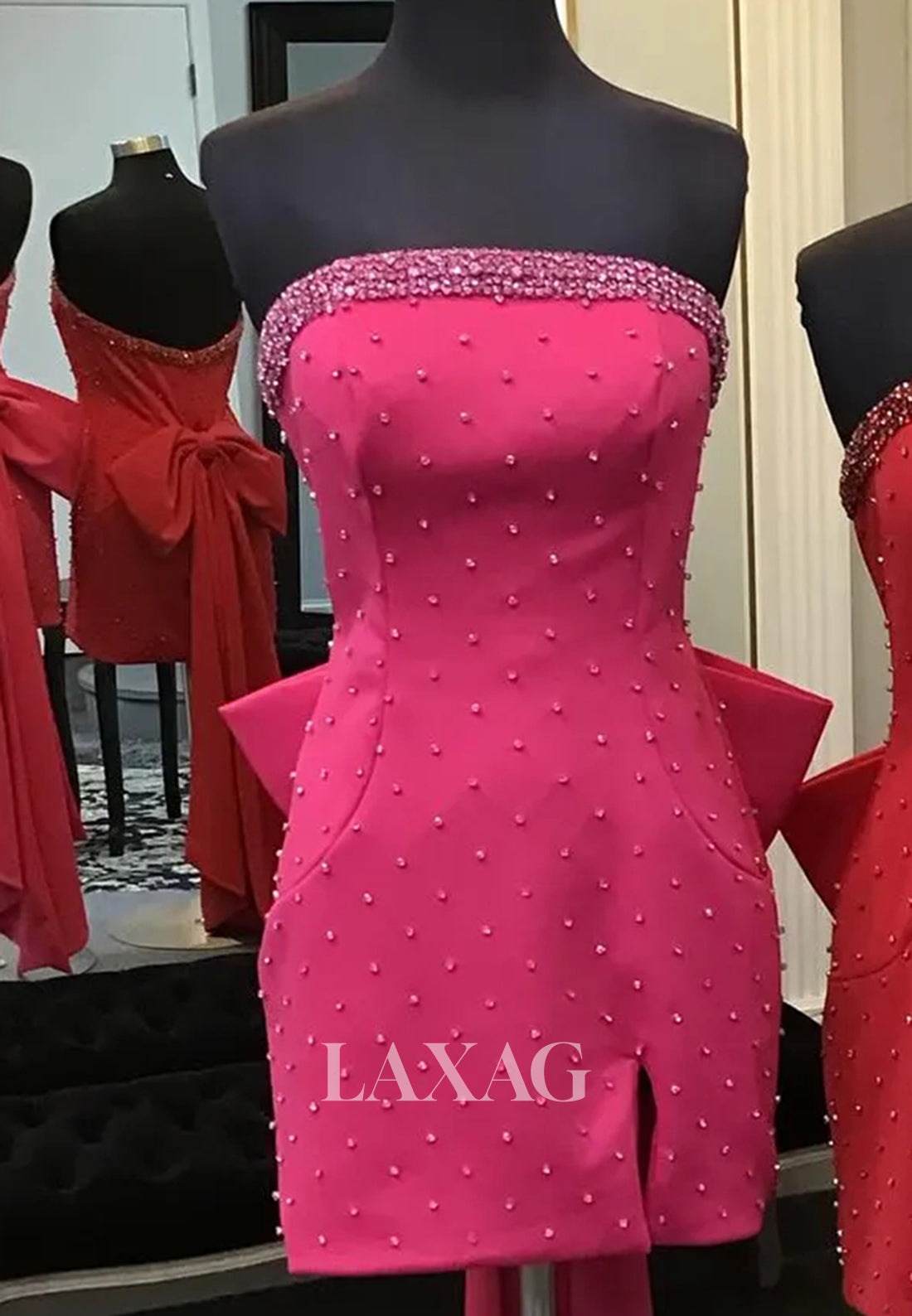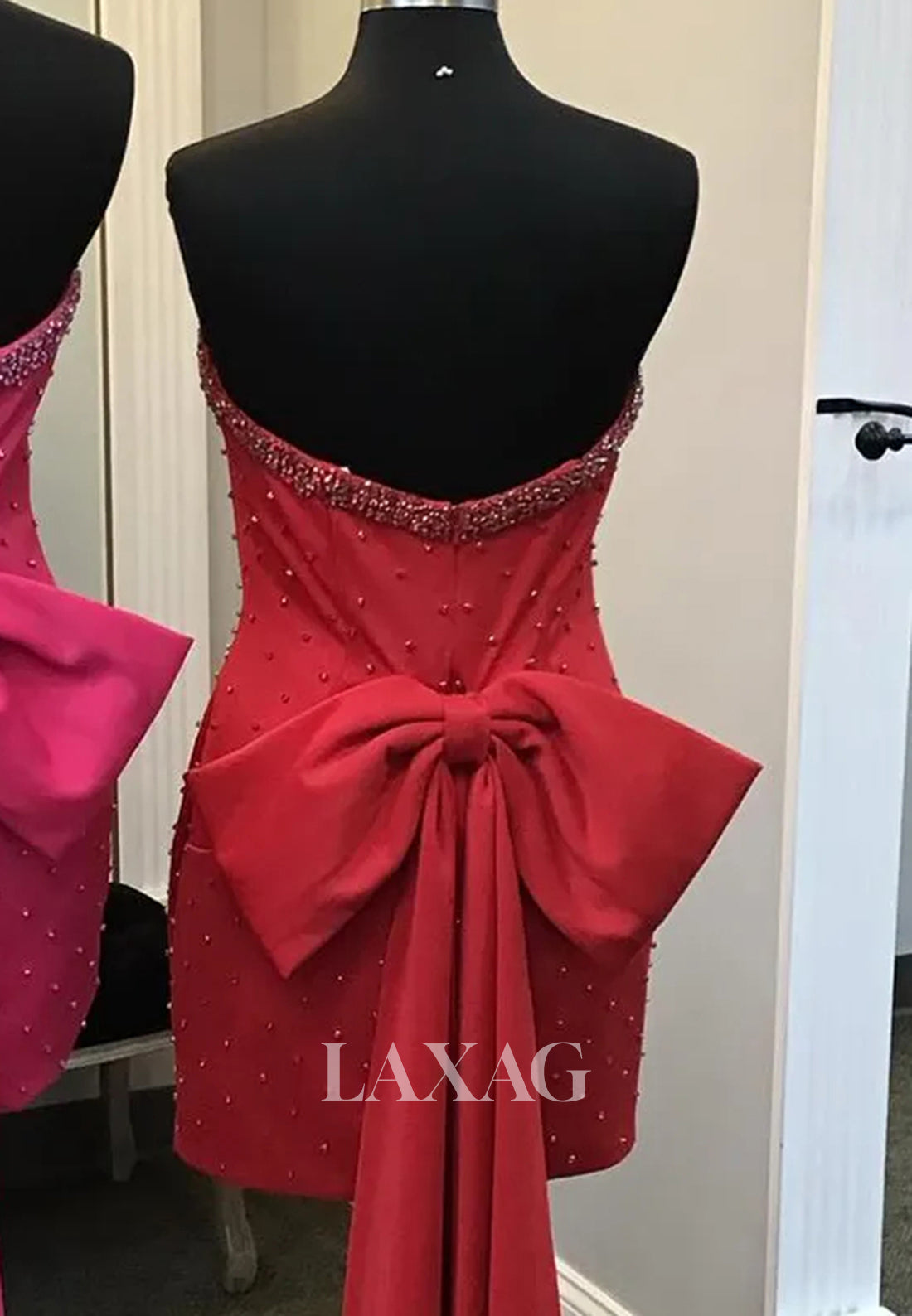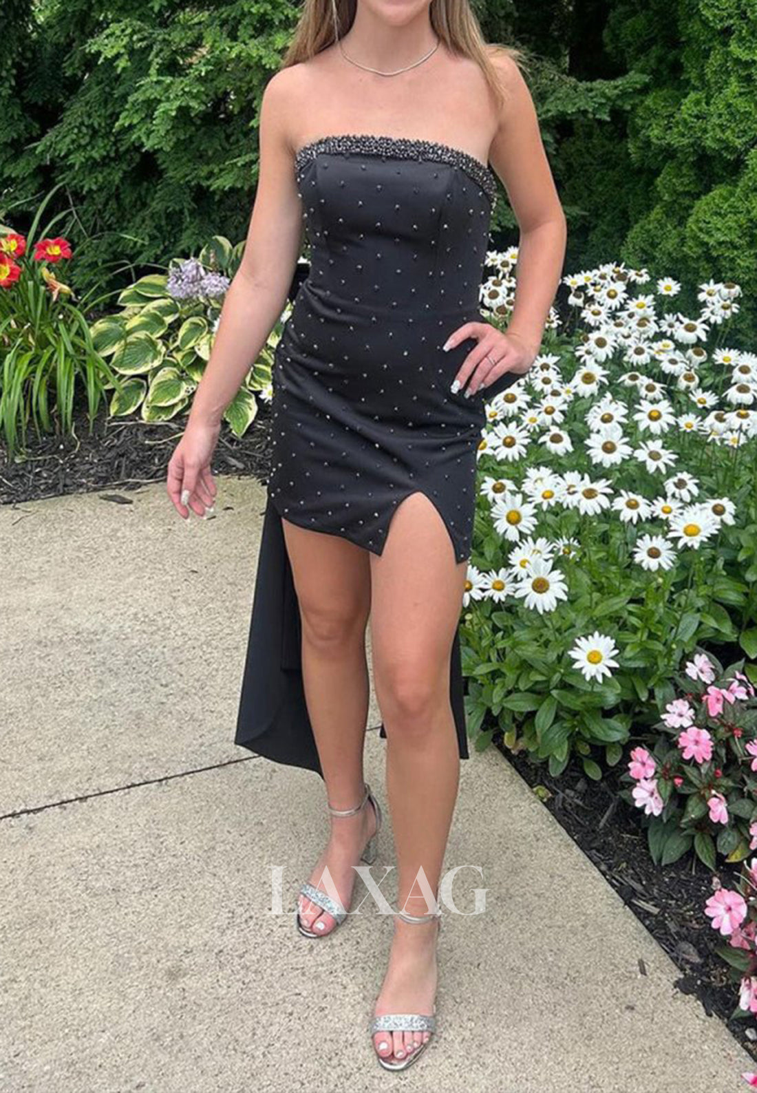 Tube Top Off-Shoulder Sleeveless Fully Beaded Pleated Satin Mermaid Short Homecoming Dress