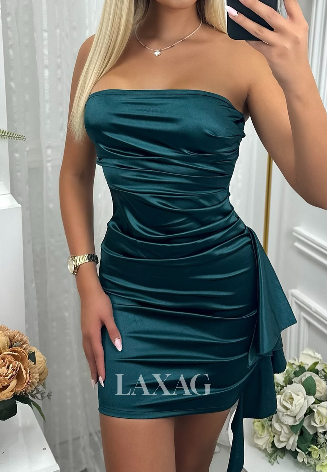 Elevate your evening look with this elegant bateau-neck, off-shoulder dress that beautifully frames your shoulders. Crafted from smooth pleated satin, its short mermaid silhouette accentuates your figure, making it a stunning choice for parties and homecoming events. Sleeveless and refined, this dress combines comfort and style effortlessly to help you shine on every special occasion.