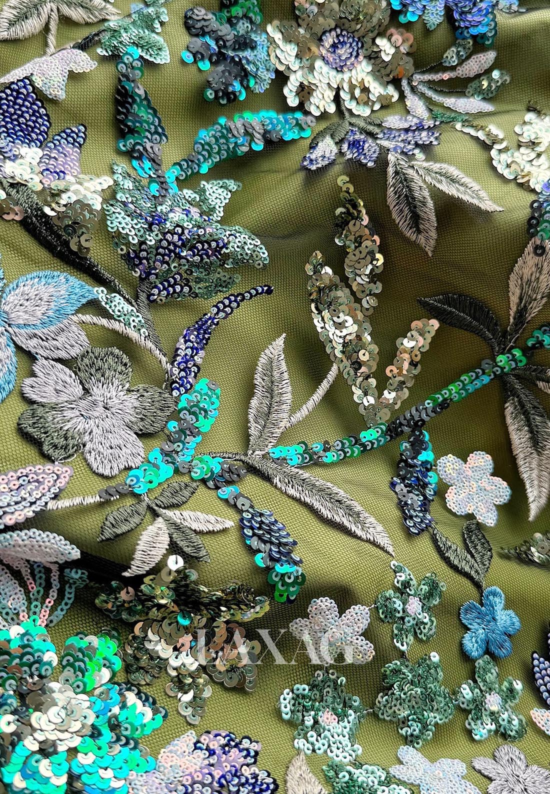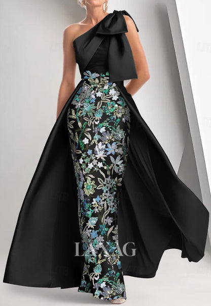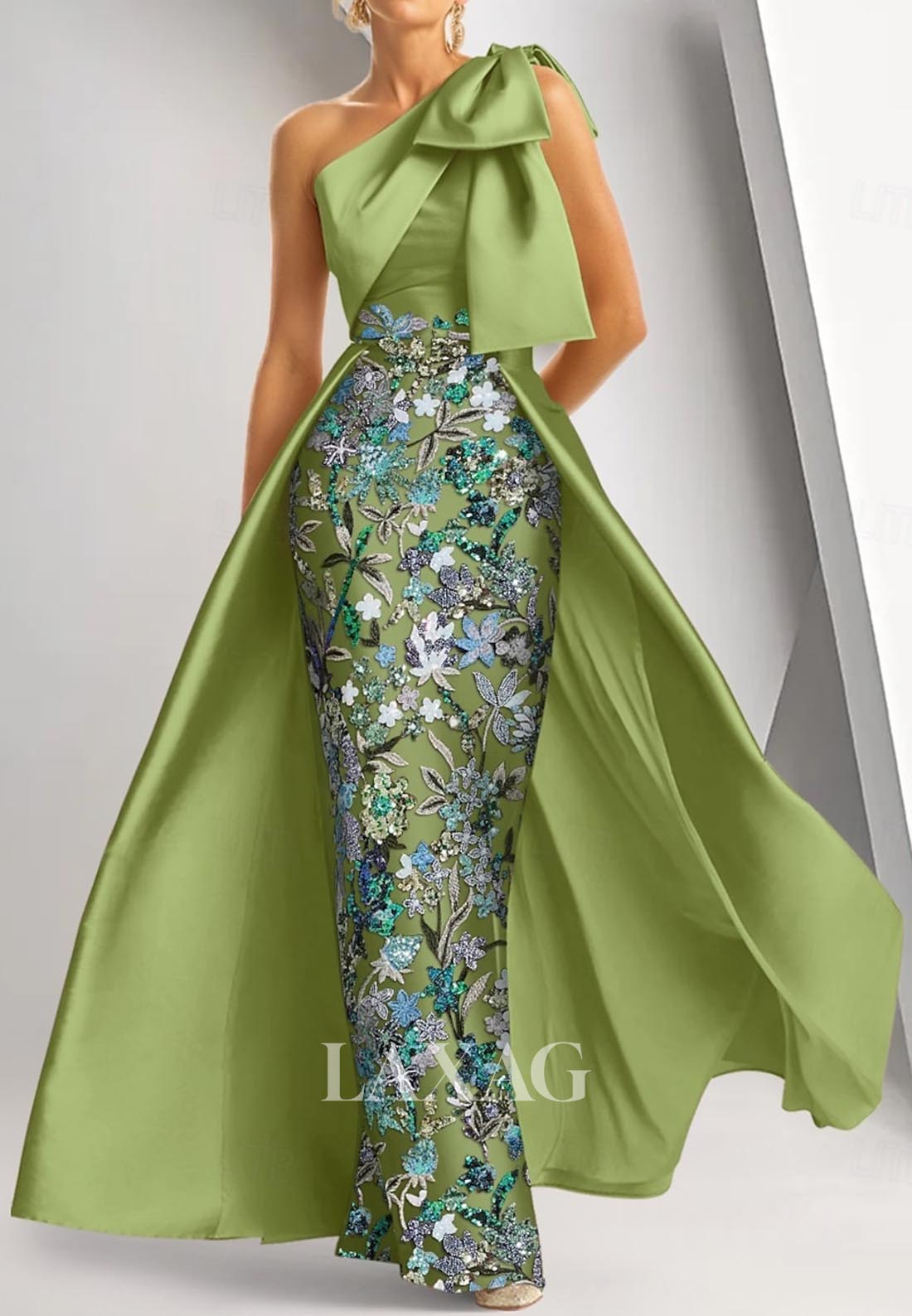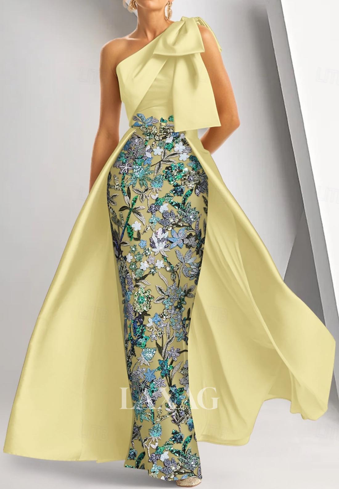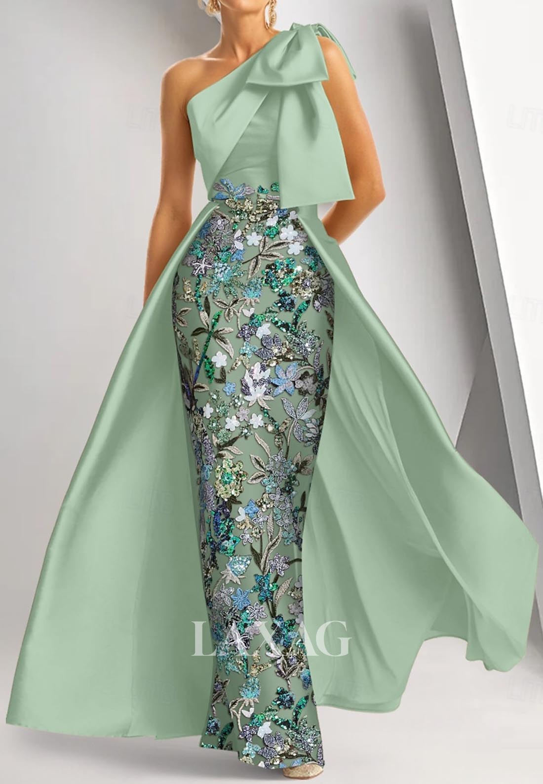 Asymmetrical-Neck Sleeveless Sequined Embroidered Floor-Length Mermaid Evening Dress