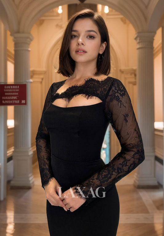 Tube Top Allover Lace Ankle-Length Formal Gowns Long-Sleeves Pleated Mermaid Evening Dress